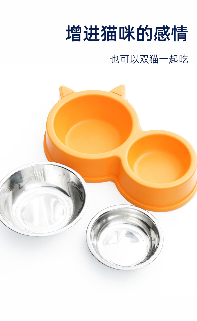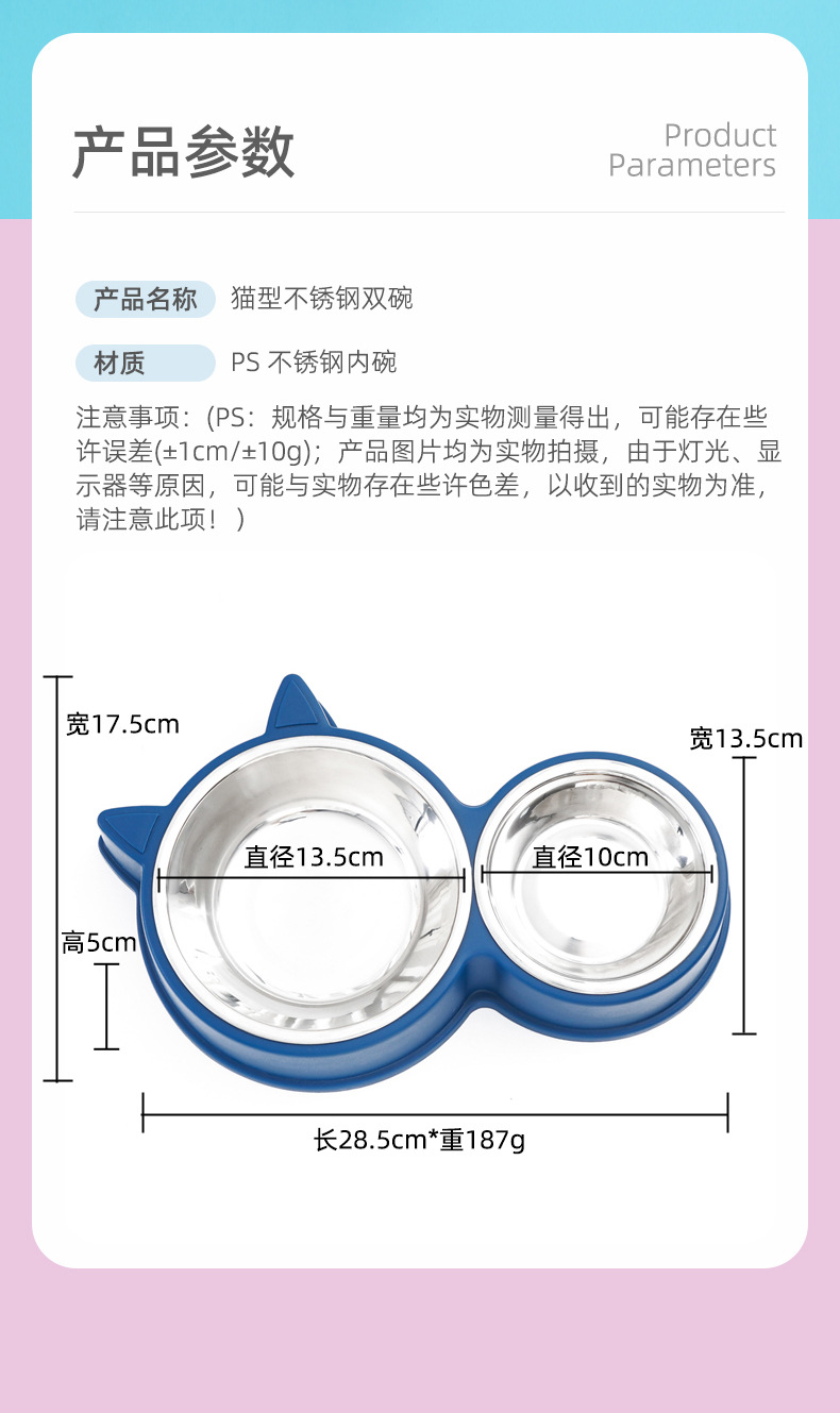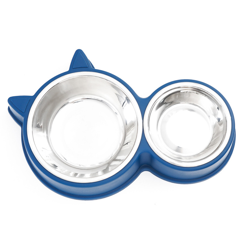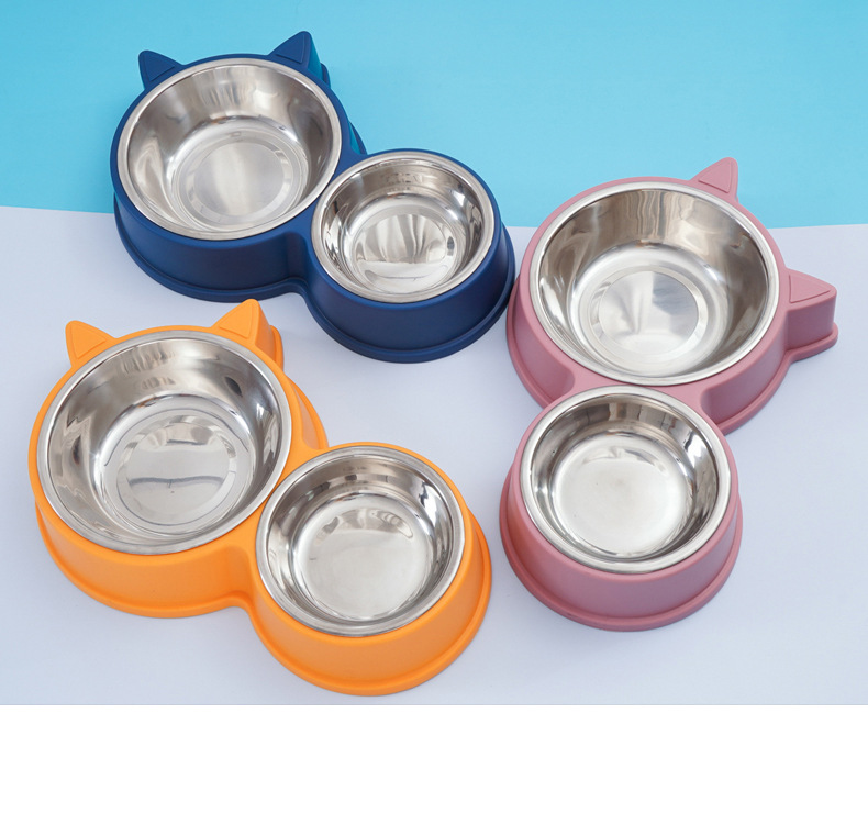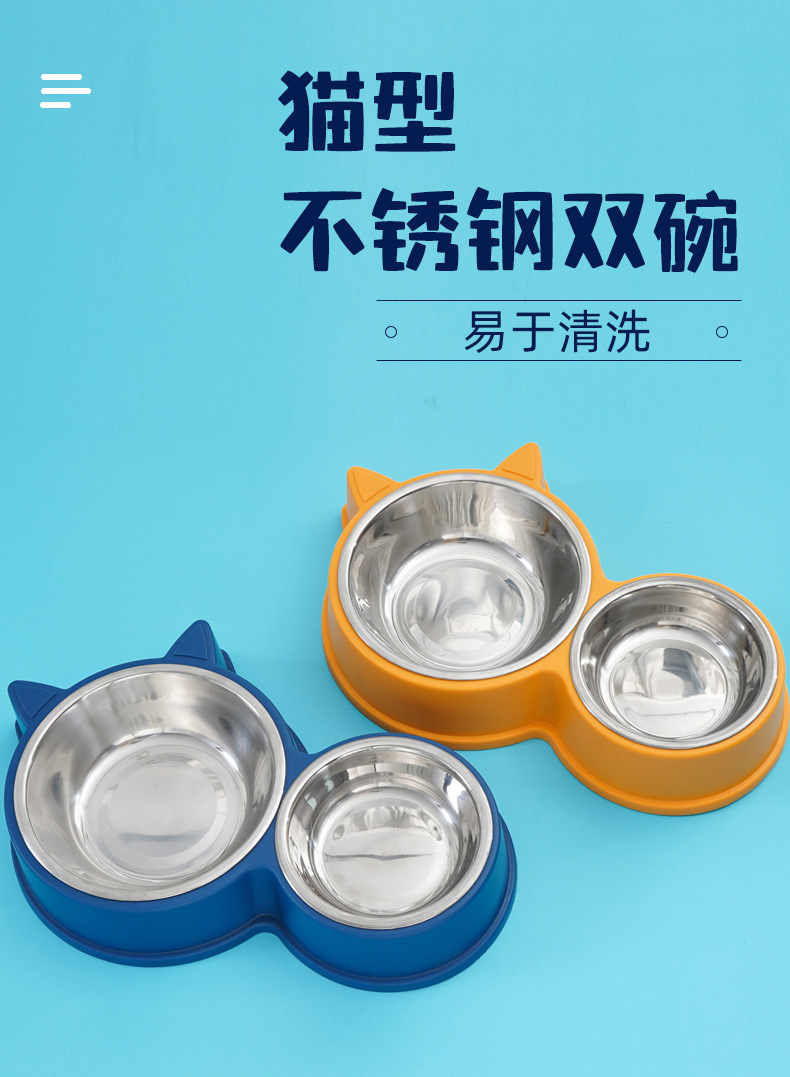 애완 동물 용품 개 스테인레스 스틸 안티 노크 더블 볼 식품 기구 귀여운 고양이 모양 고양이 먹이 및 음주