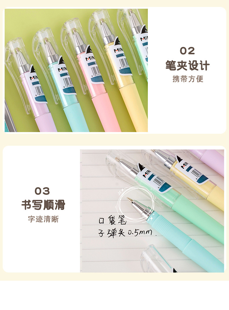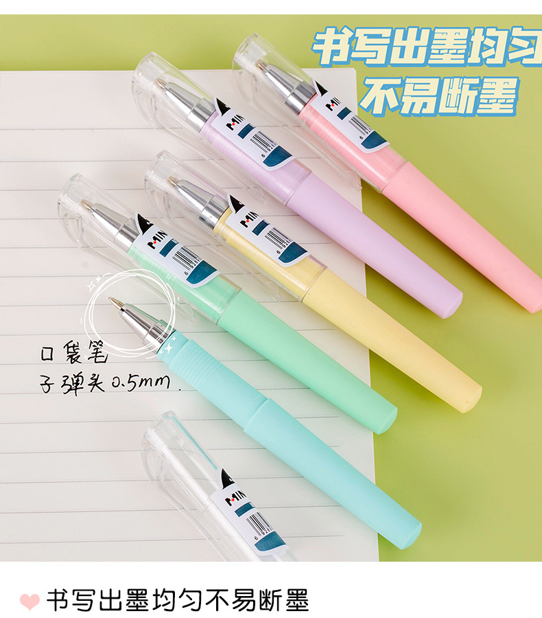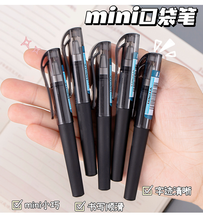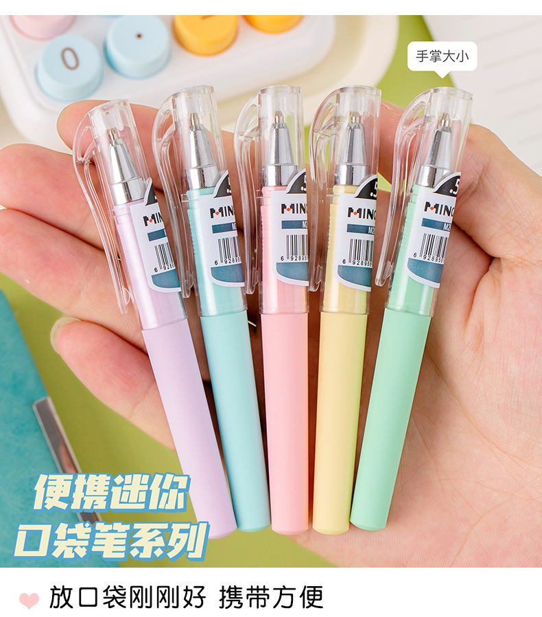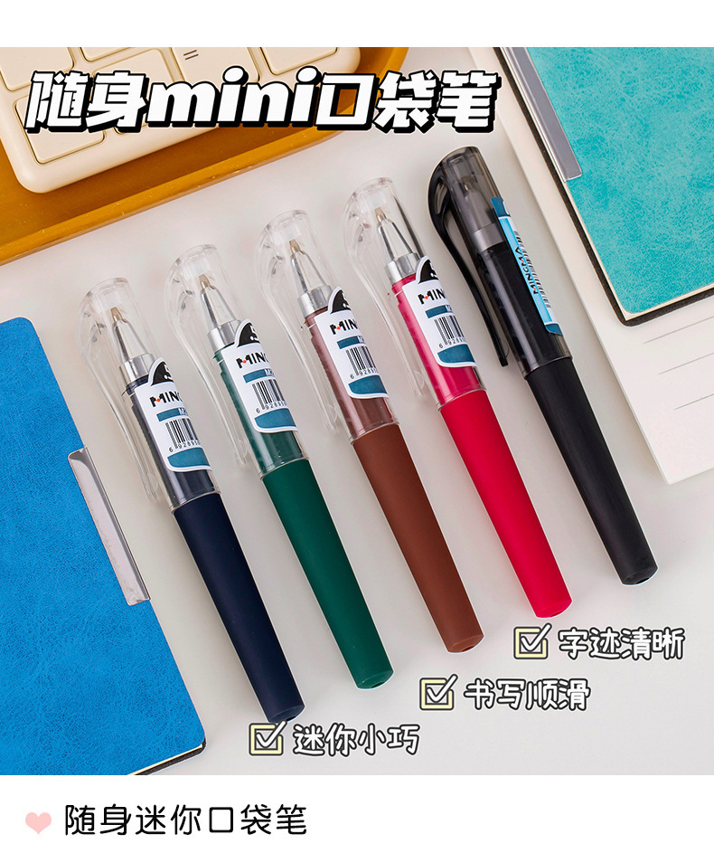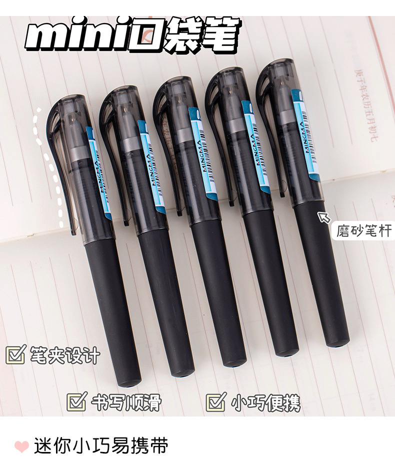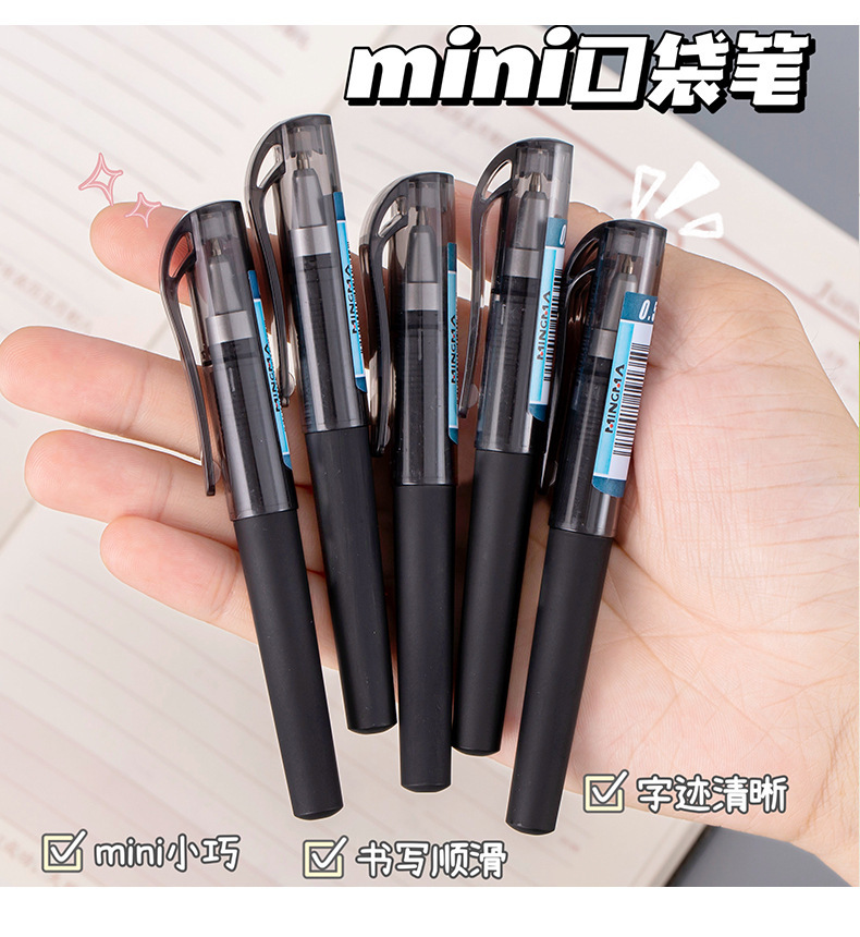 미니 포켓 펜 학생을위한 짧은 휴대용 학교 선물 젤 펜 0.5 총알 사무실 브러시 블랙 펜