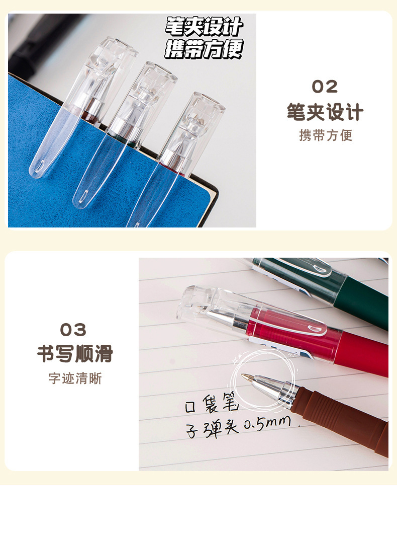 미니 포켓 펜 학생을위한 짧은 휴대용 학교 선물 젤 펜 0.5 총알 사무실 브러시 블랙 펜스토어 가기