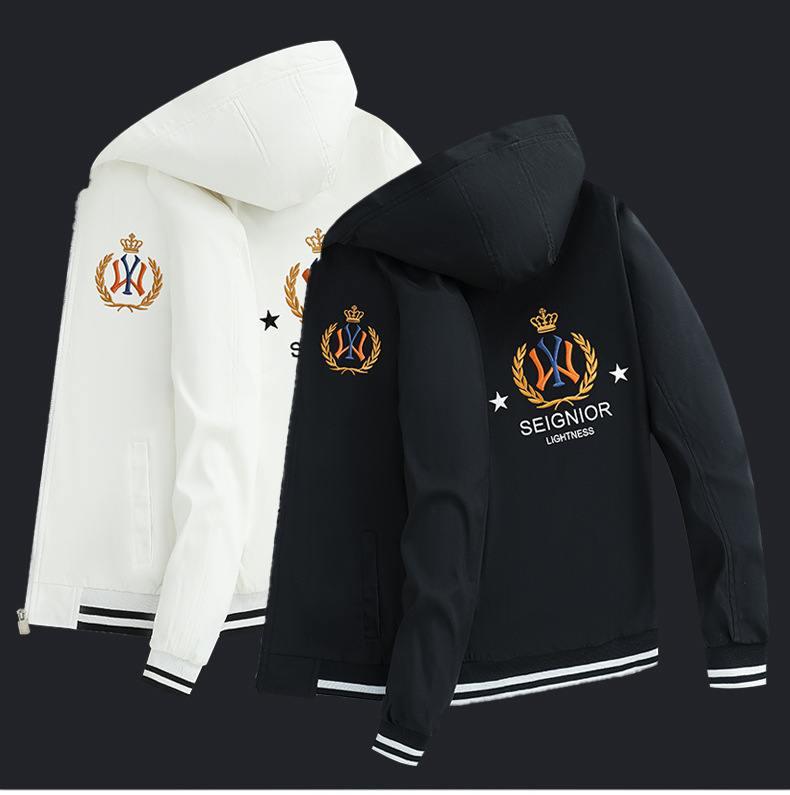 새로운 스타일 재킷 남성 후드 유럽 스테이션 트렌디 브랜드 캐주얼 하이 엔드 자수 재킷 패션 한국 스타일 유럽 남성 의류스토어 가기