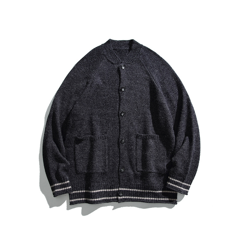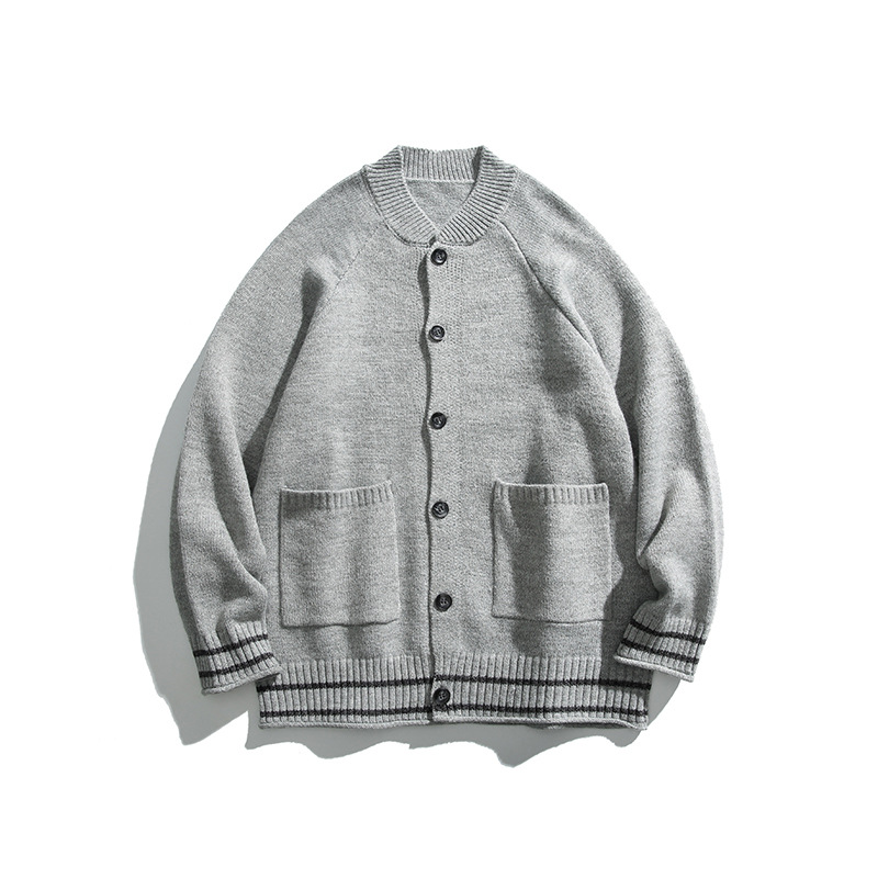 가을 2024 새로운 남성 일본 도시 소년 단색 포켓 카디건 커플 크루 넥 스웨터 조끼 MS10스토어 가기