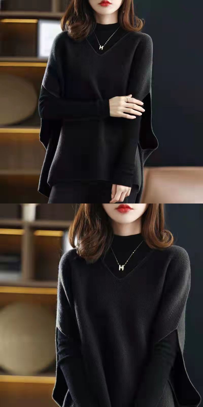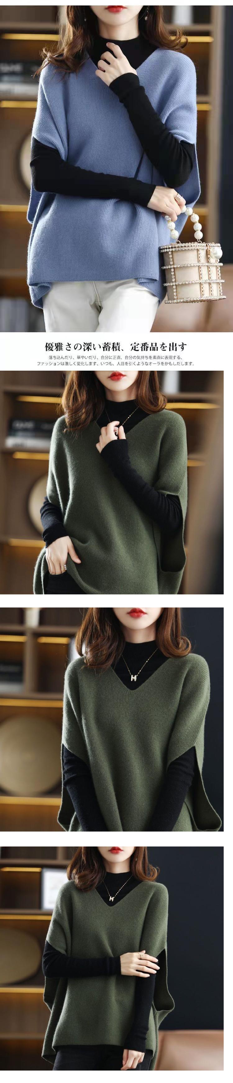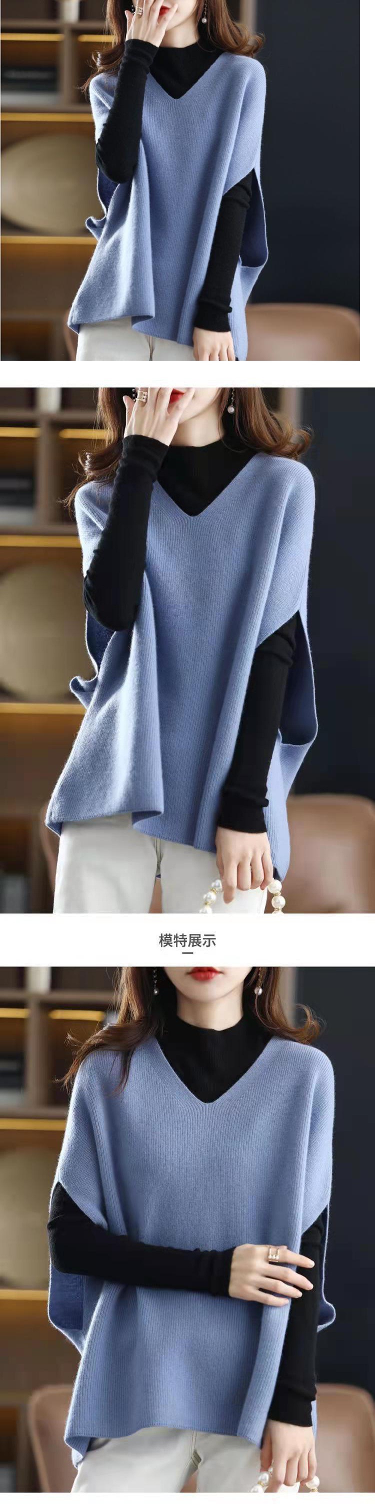 2025 새로운 가을, 겨울 스타일 심플 루즈 배트 슬리브 탑, 부드럽고 왁시한 여성 스웨터 조끼, 브이넥 니트 조끼스토어 가기
