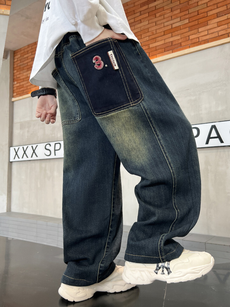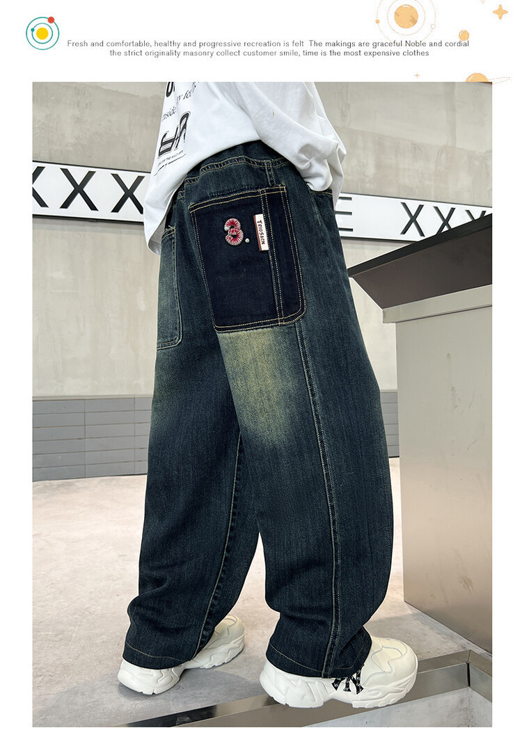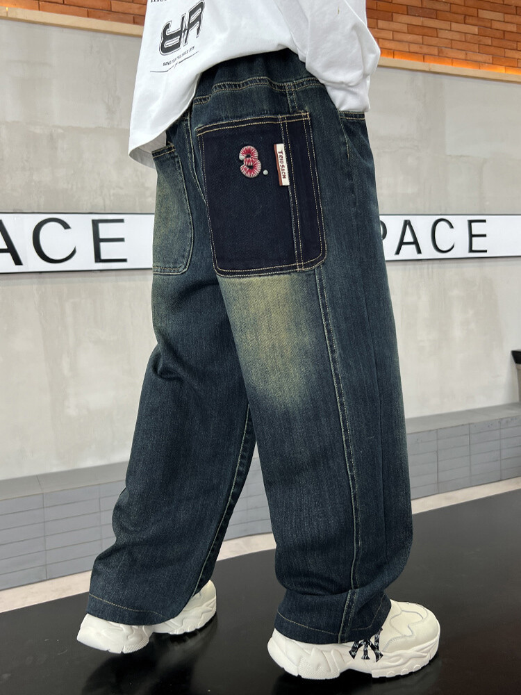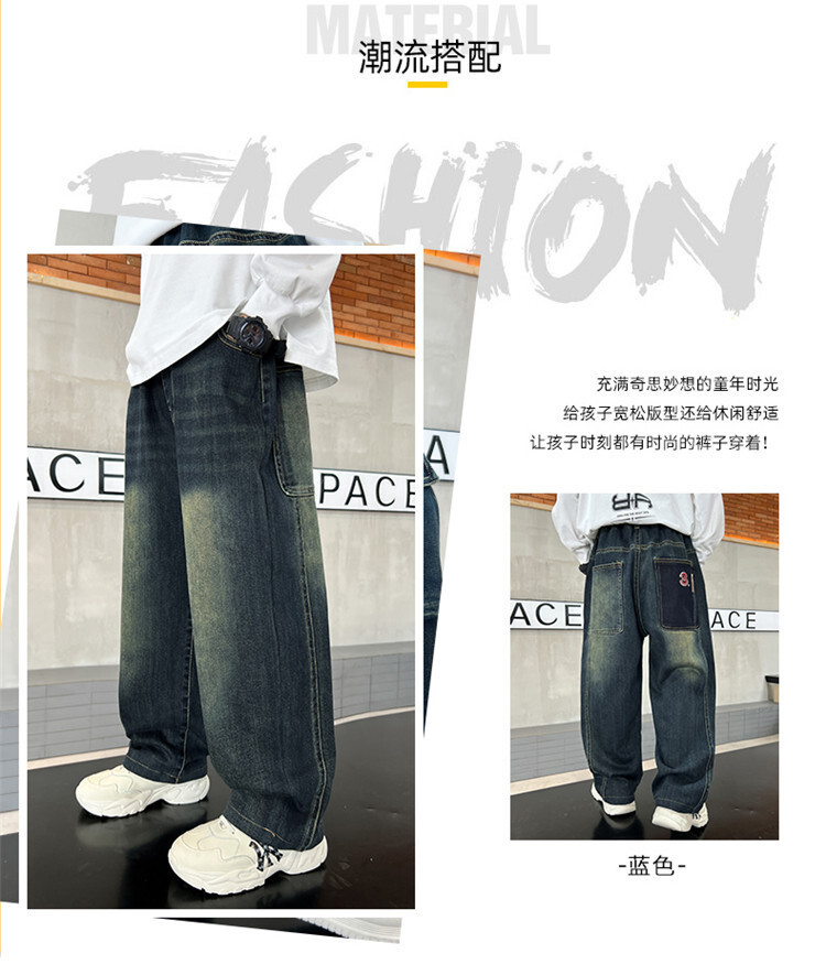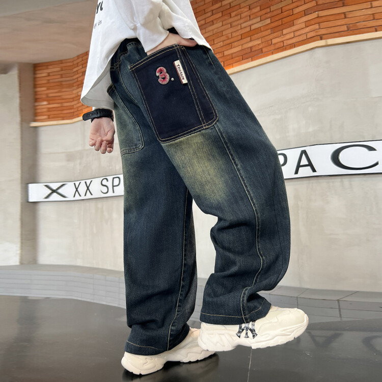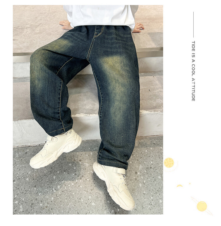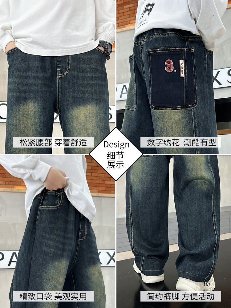 트렌디 한 팬 가을 청바지 도매 아동복 중다 소년 한 팬 느슨한 캐주얼 바지 올매치 스트레이트 바지