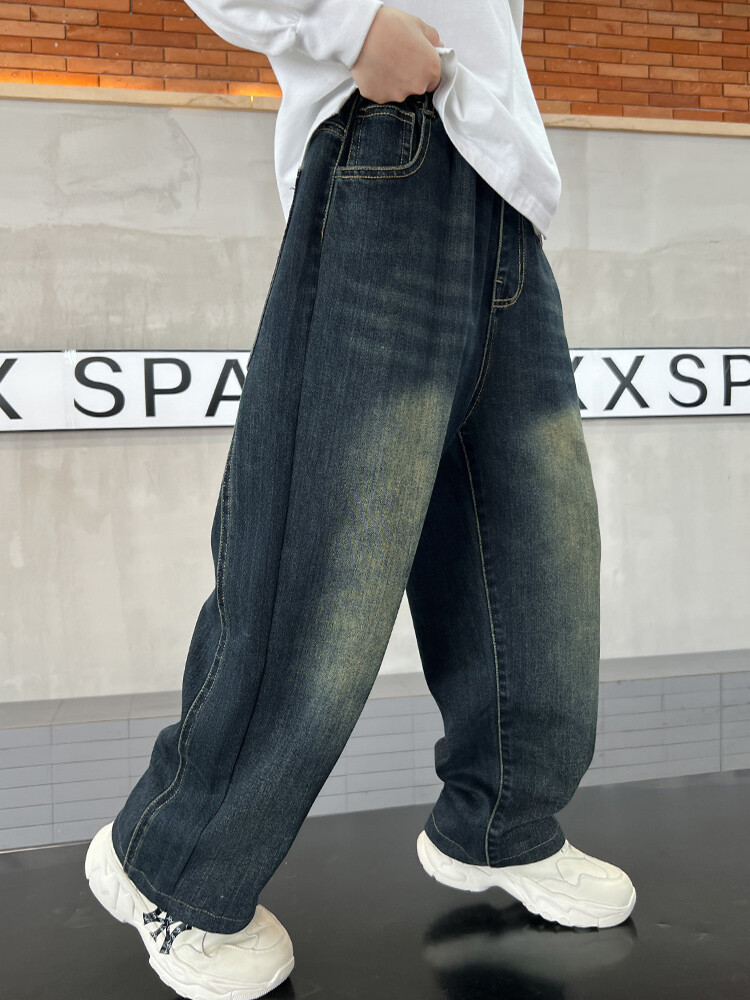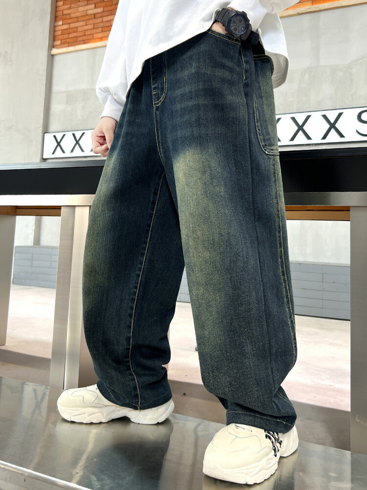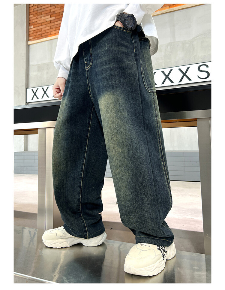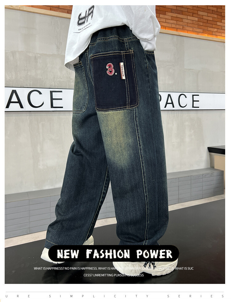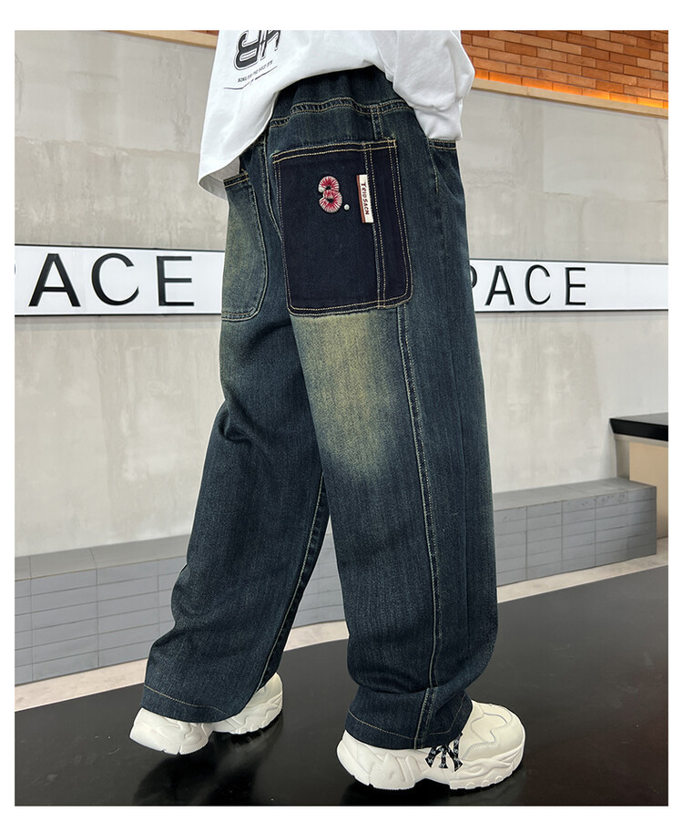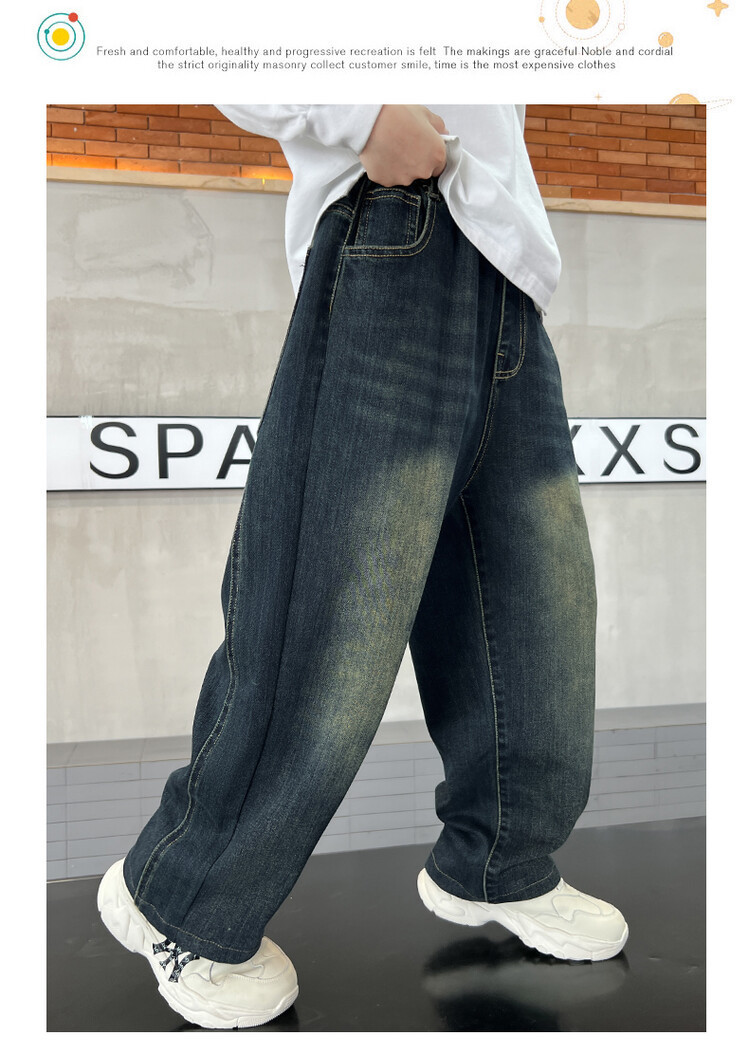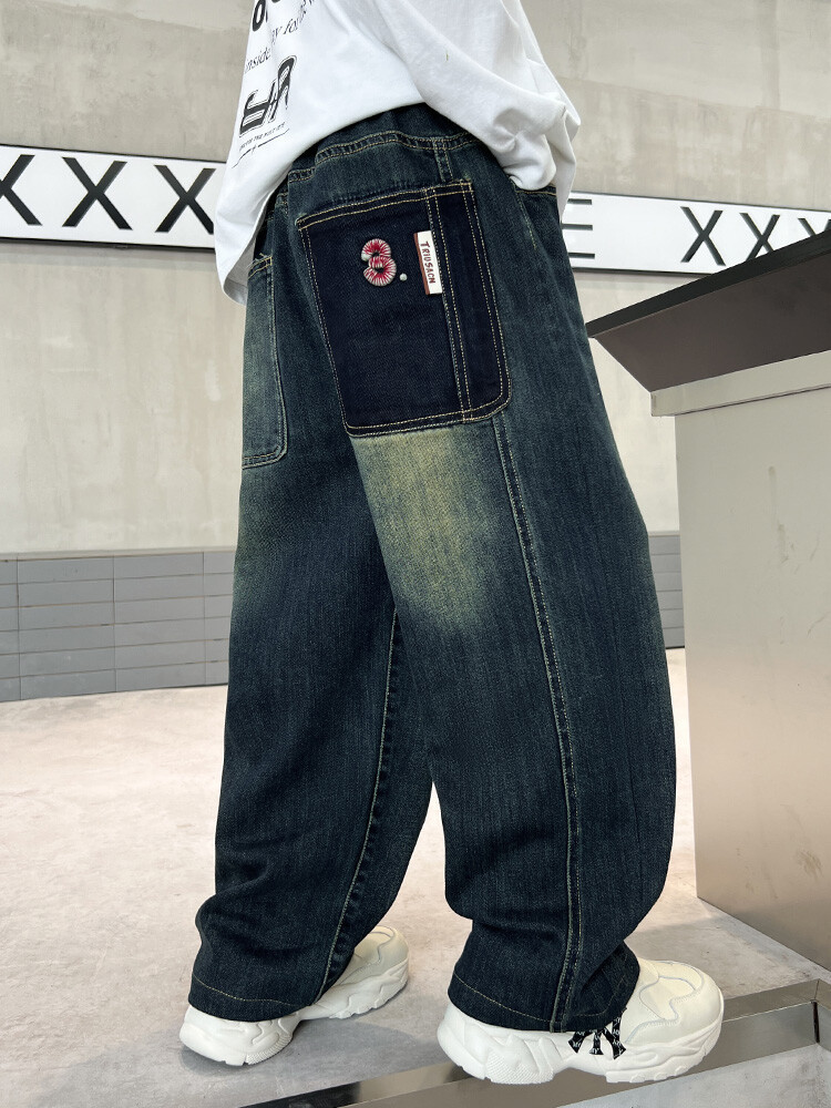 트렌디 한 팬 가을 청바지 도매 아동복 중다 소년 한 팬 느슨한 캐주얼 바지 올매치 스트레이트 바지