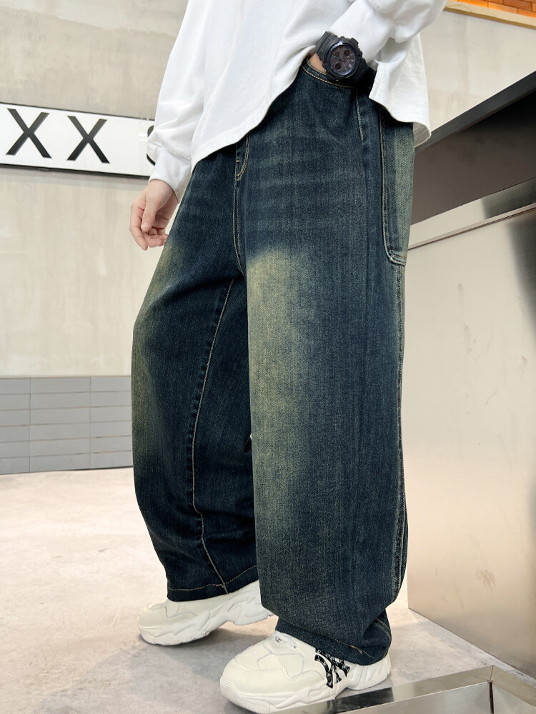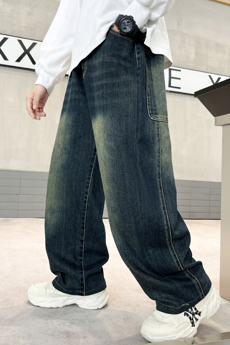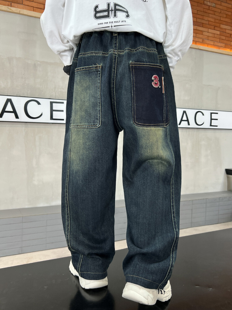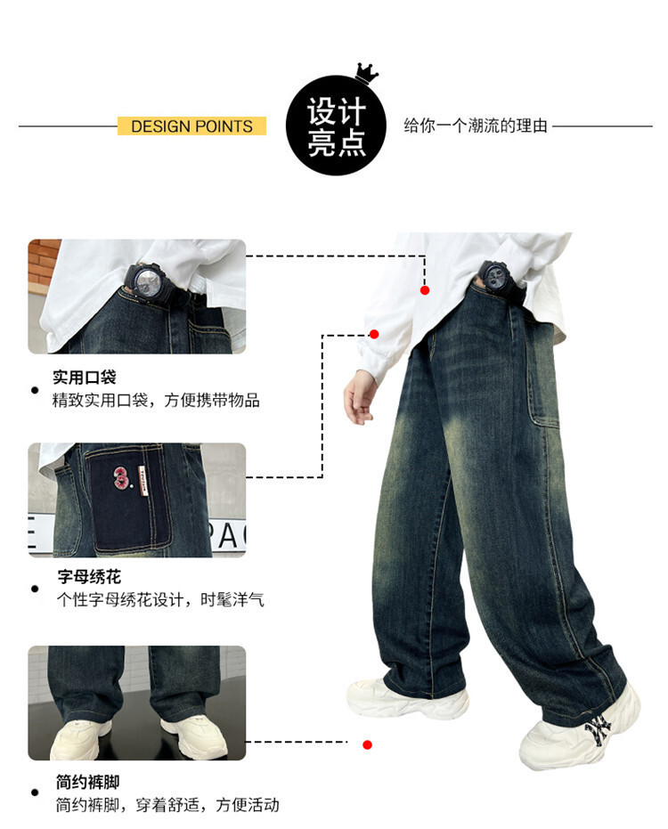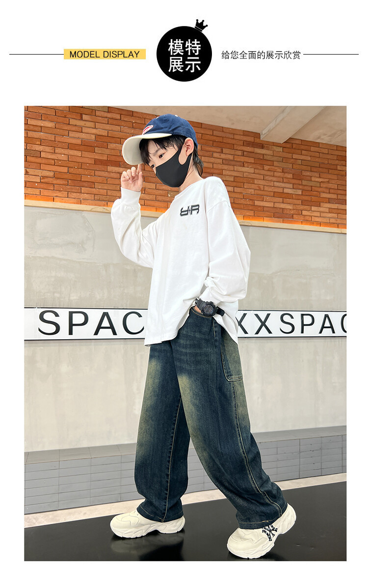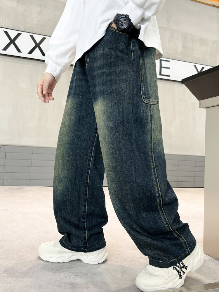 트렌디 한 팬 가을 청바지 도매 아동복 중다 소년 한 팬 느슨한 캐주얼 바지 올매치 스트레이트 바지