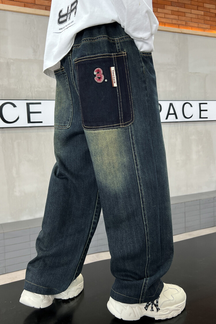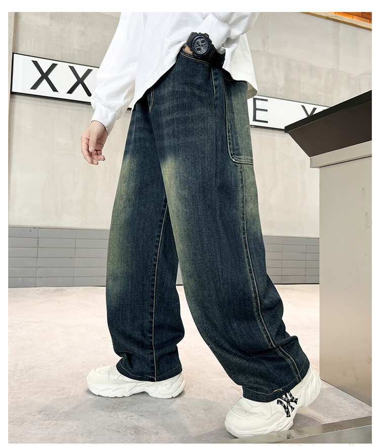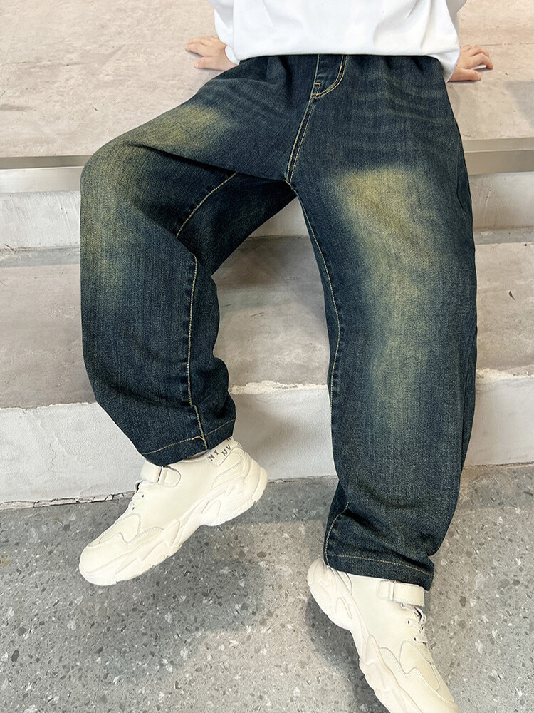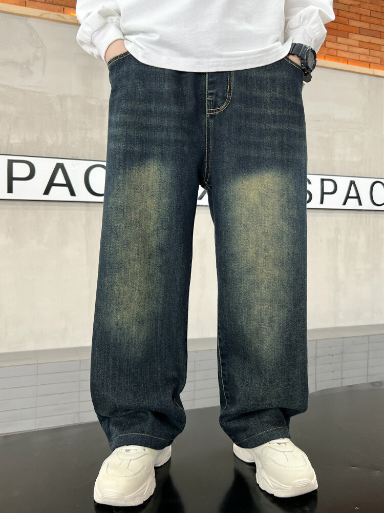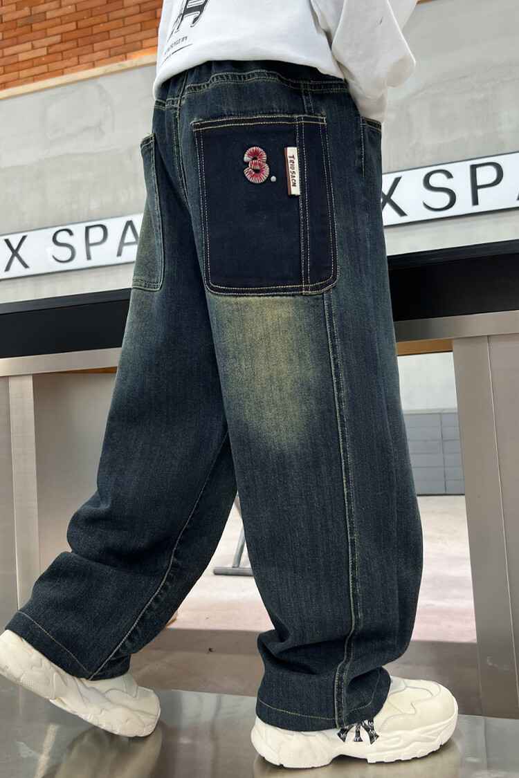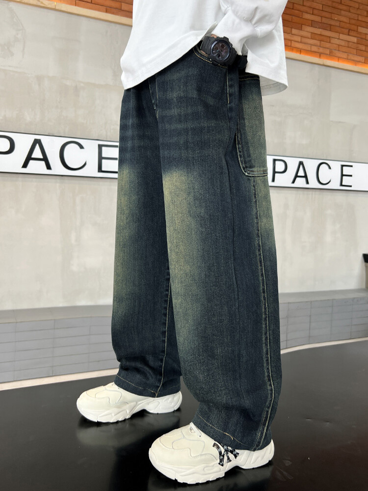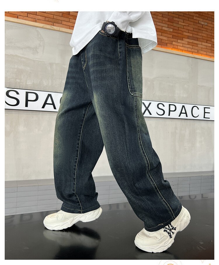트렌디 한 팬 가을 청바지 도매 아동복 중다 소년 한 팬 느슨한 캐주얼 바지 올매치 스트레이트 바지