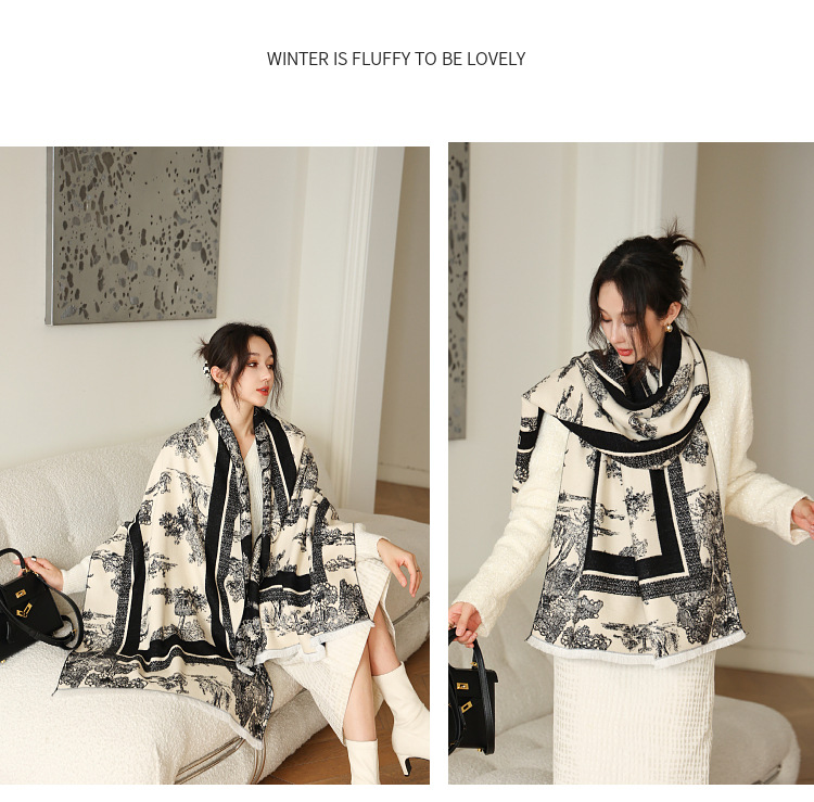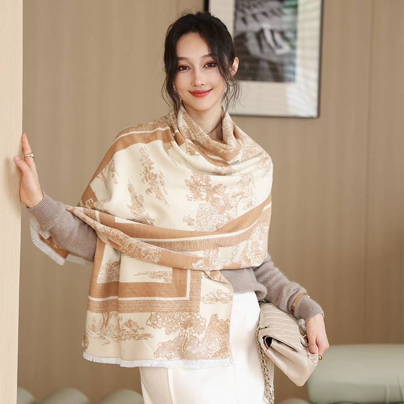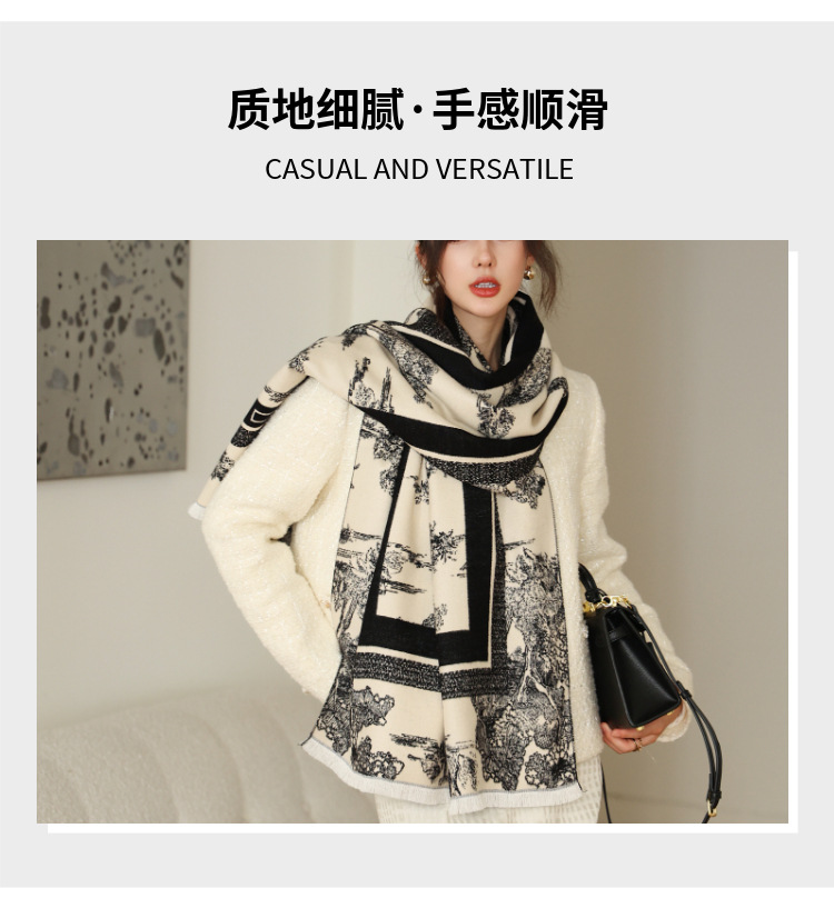 가을과 겨울 새로운 양모 스카프 여성 고급 우아한 이중 사용 외부 목도리 여성 양면 인쇄 올매치 따뜻한 스카프스토어 가기