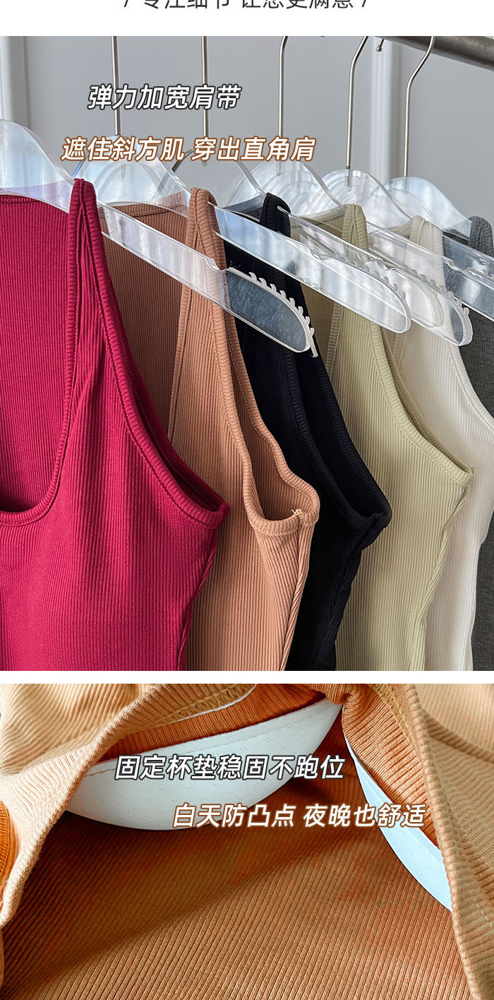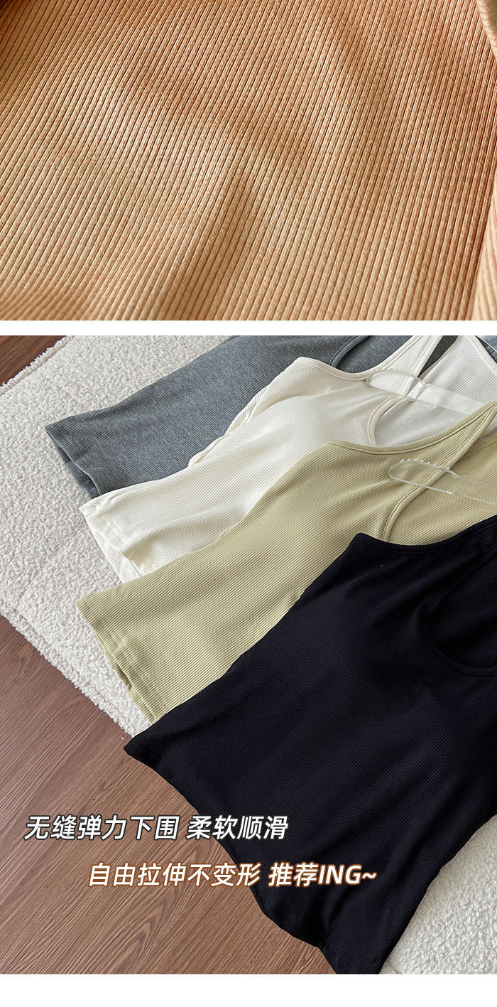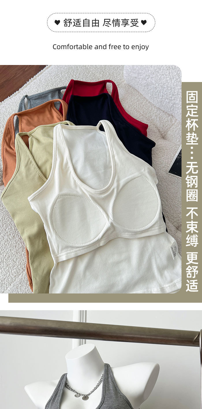 여성용 초가을 신상품 홀터넥 레이서넥 탱크탑 한국 스타일 U넥 가슴 패드 슬림핏 밑단 라인업 뷰티백 속옷