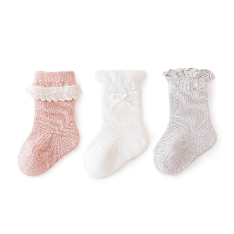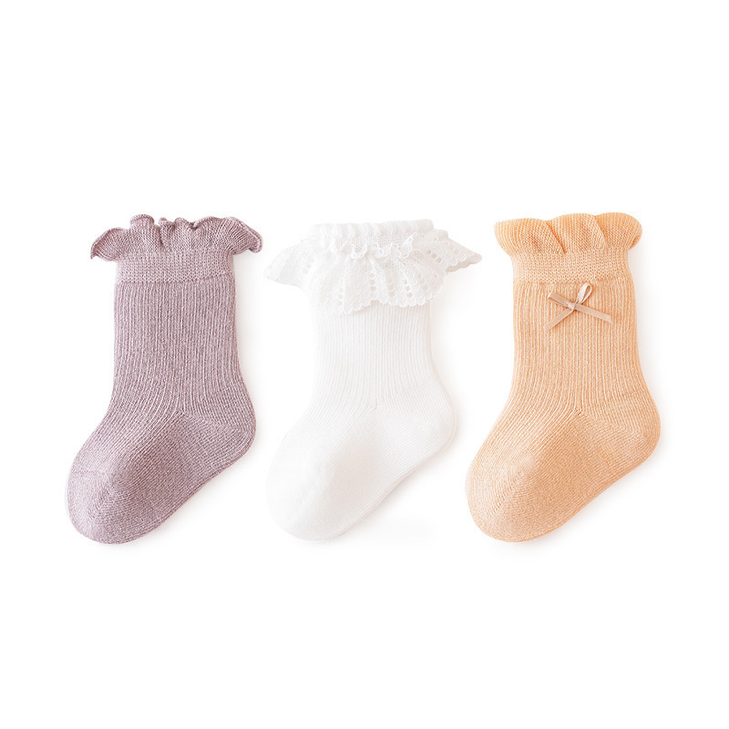 25개 아기 양말 A급 유아용 무봉제 신생아 면 양말 어린이 여자아이 레이스 리본 양말