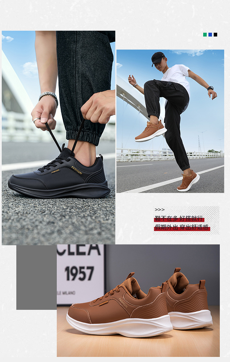 운동화 남성용 신발 블랙 플러스 사이즈 가죽 캐주얼 신발 경량 부드러운 밑창 작업 신발 두꺼운 밑창 미끄럼 방지 운동화스토어 가기