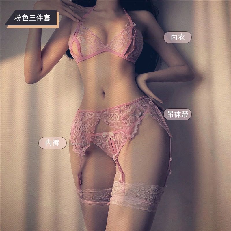 섹시한 여자 오픈 T-팬츠 세트 3 점 비키니 란제리 레이스 유혹 T-Thong Three