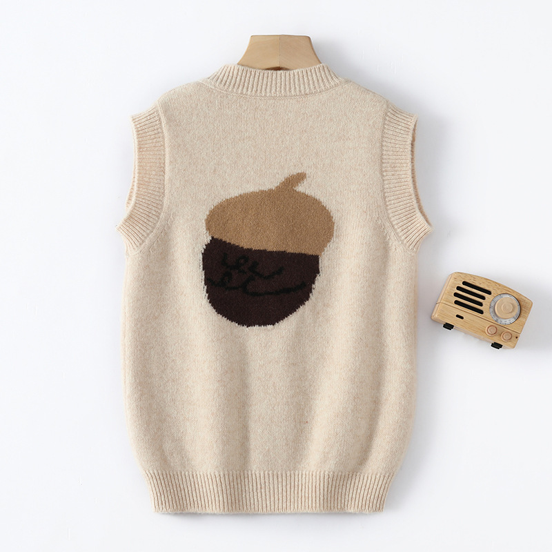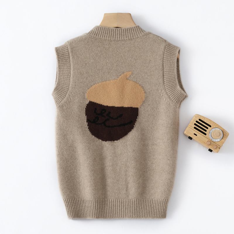 소년과 소녀 솔리드 컬러 V 넥 밤나무 조끼 100 순수 양모 카디건 조끼 아기 소프트 왁스 니트 민소매 스웨터