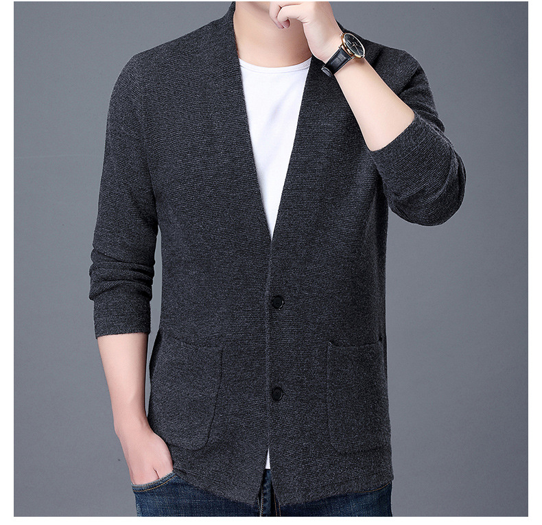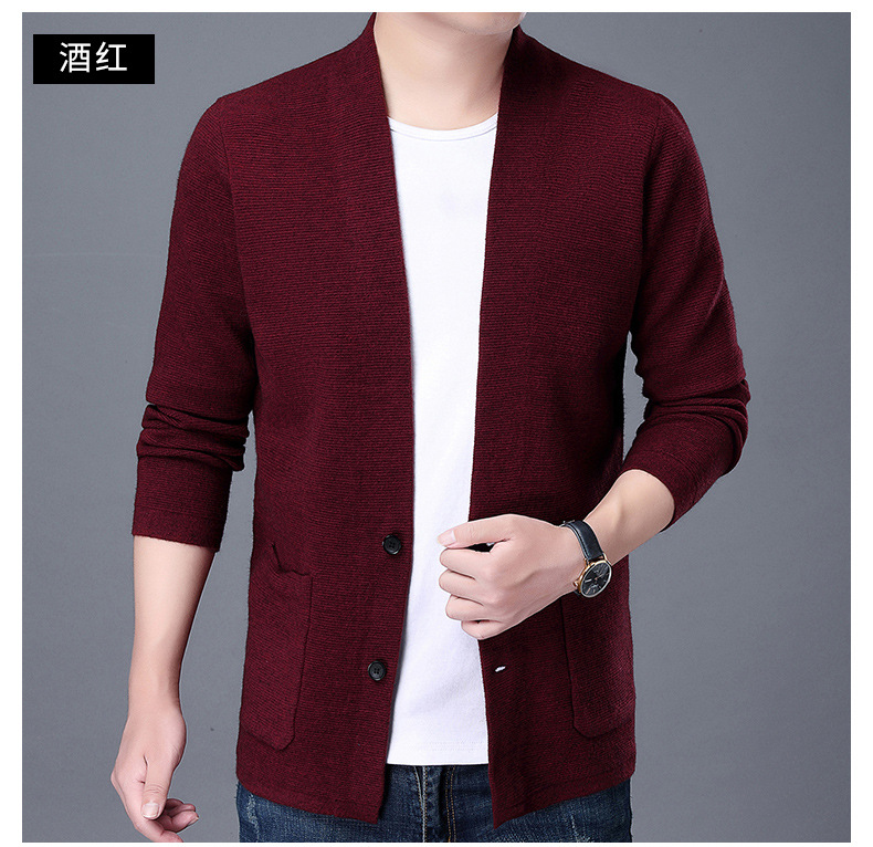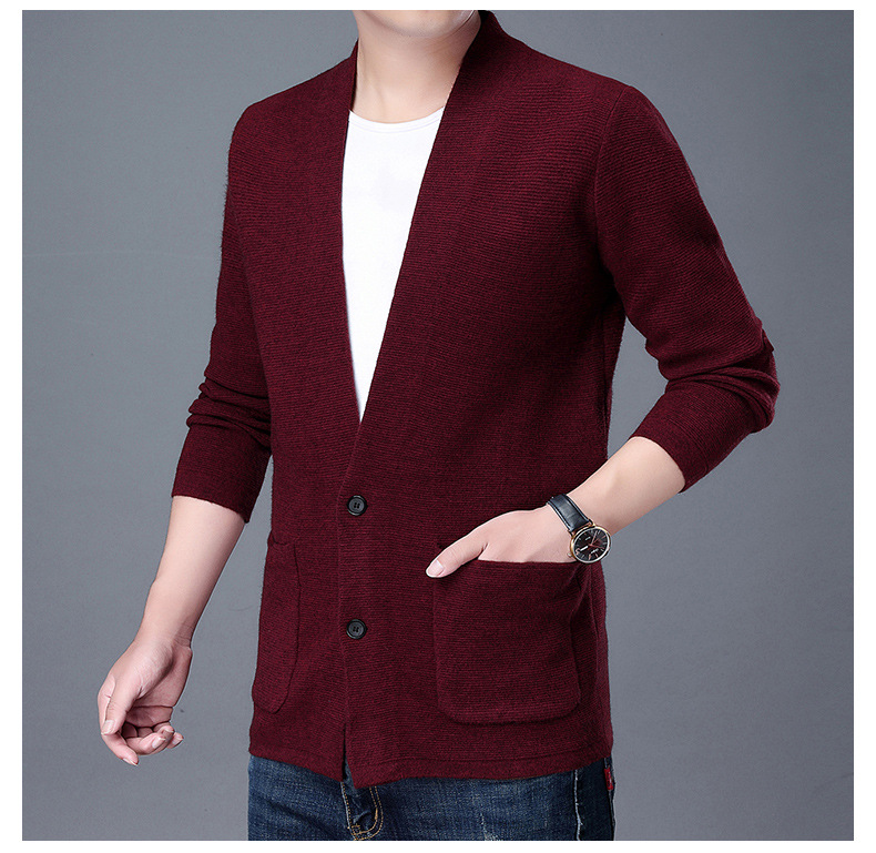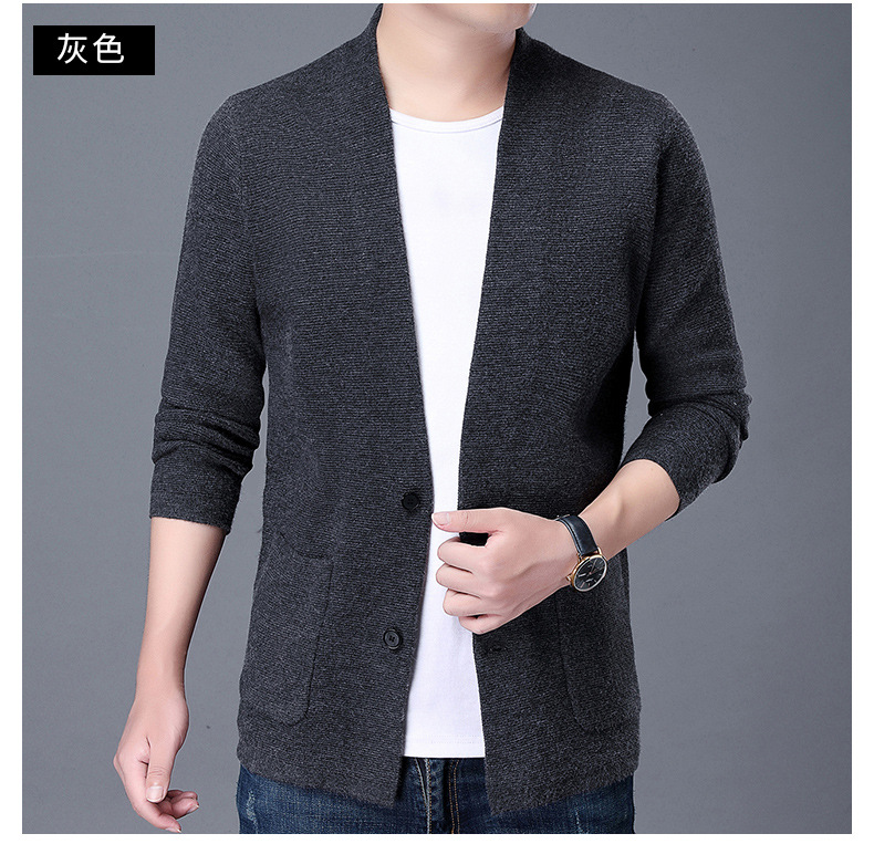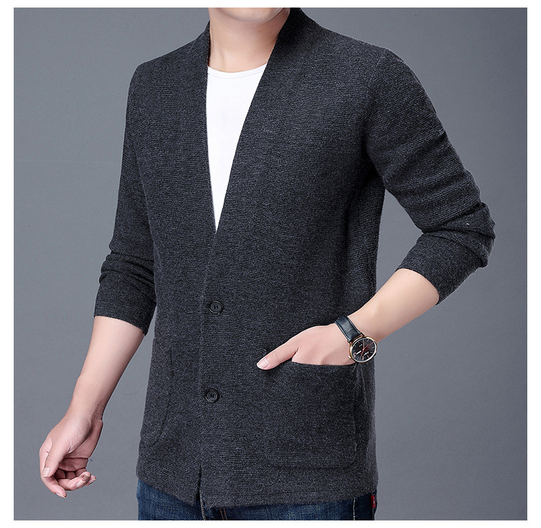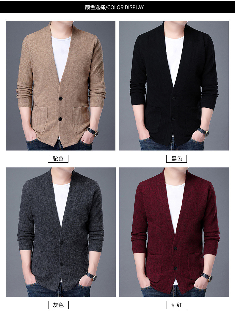뉴 롱 슬리브 리얼 포켓 V 넥 남자 니트 카디건 청소년 캐주얼 남성 앙고라 스웨터 올 매치 재킷