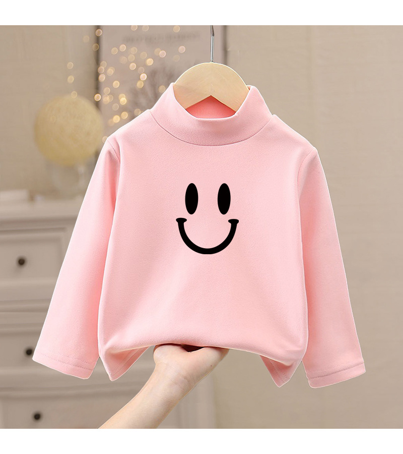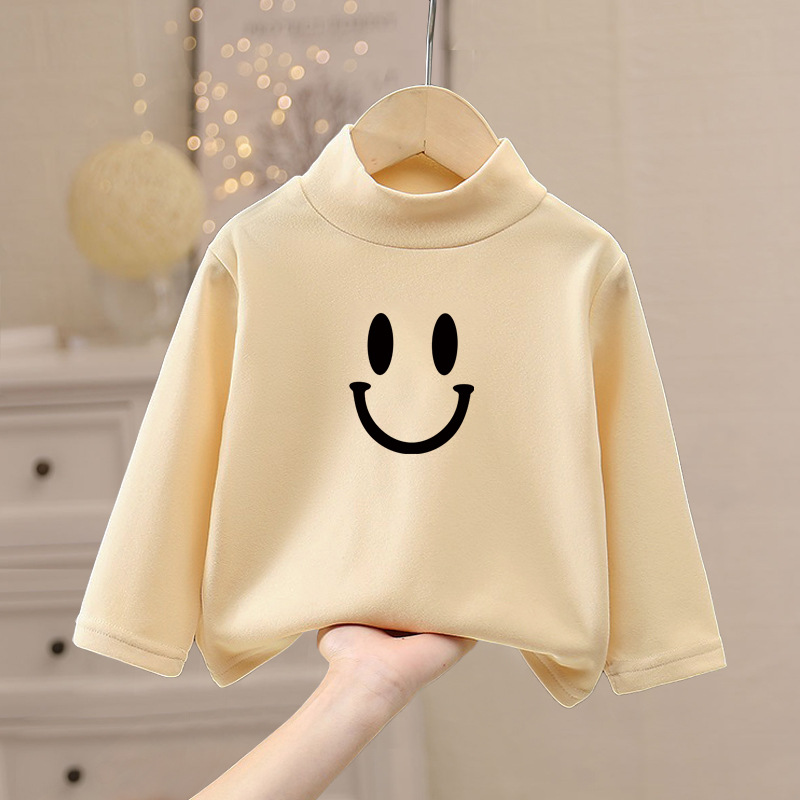 스마일리 인쇄 긴 소매 올 매치 티셔츠 가을과 겨울 새로운 스타일 소년 소녀 크고 큰 어린이 벨벳 셔츠