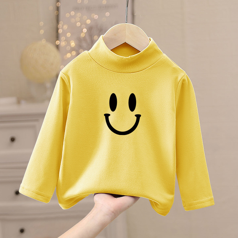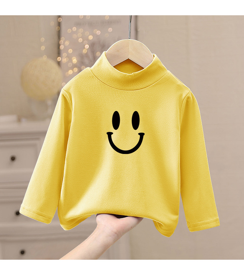 스마일리 인쇄 긴 소매 올 매치 티셔츠 가을과 겨울 새로운 스타일 소년 소녀 크고 큰 어린이 벨벳 셔츠스토어 가기