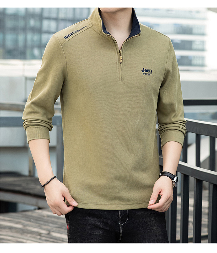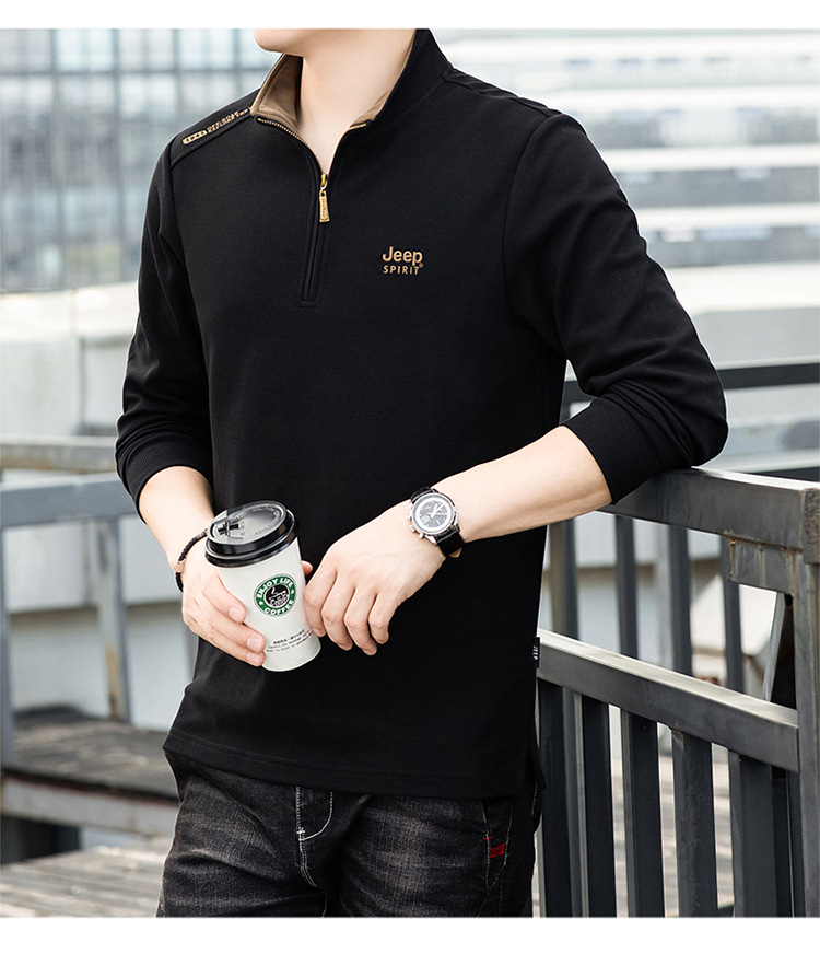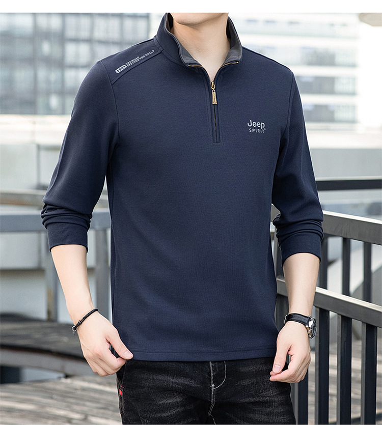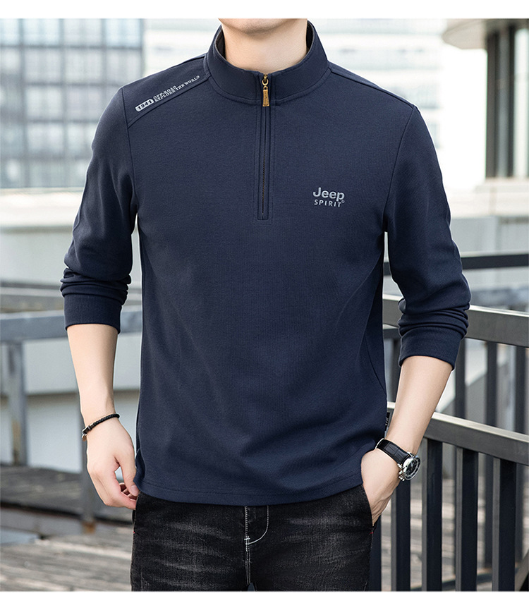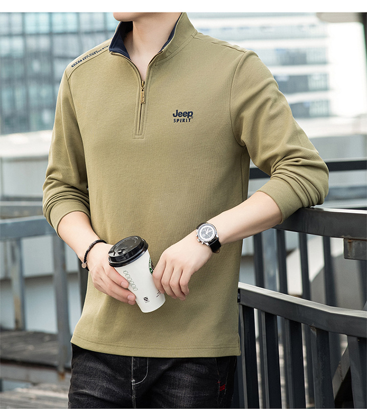 JP2024 가을 새 남자 하프 오픈 가슴 루즈 코튼 칼라 남자 긴 소매 땀 지퍼 하프 오픈 가슴 SS5530스토어 가기