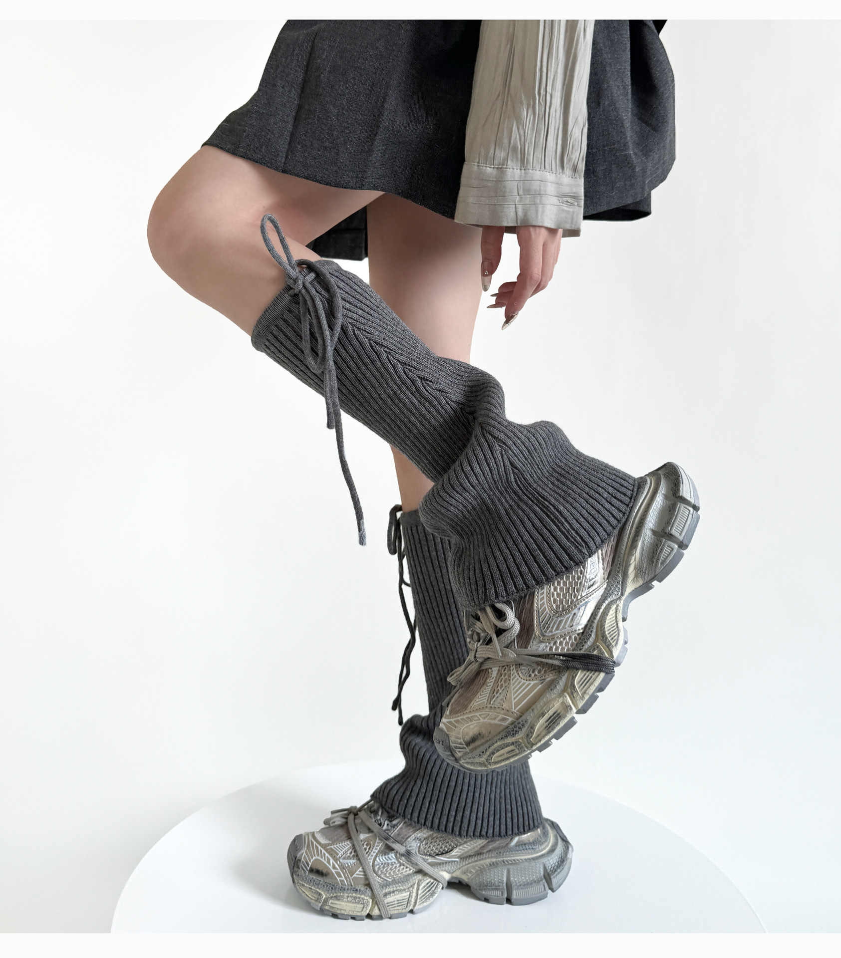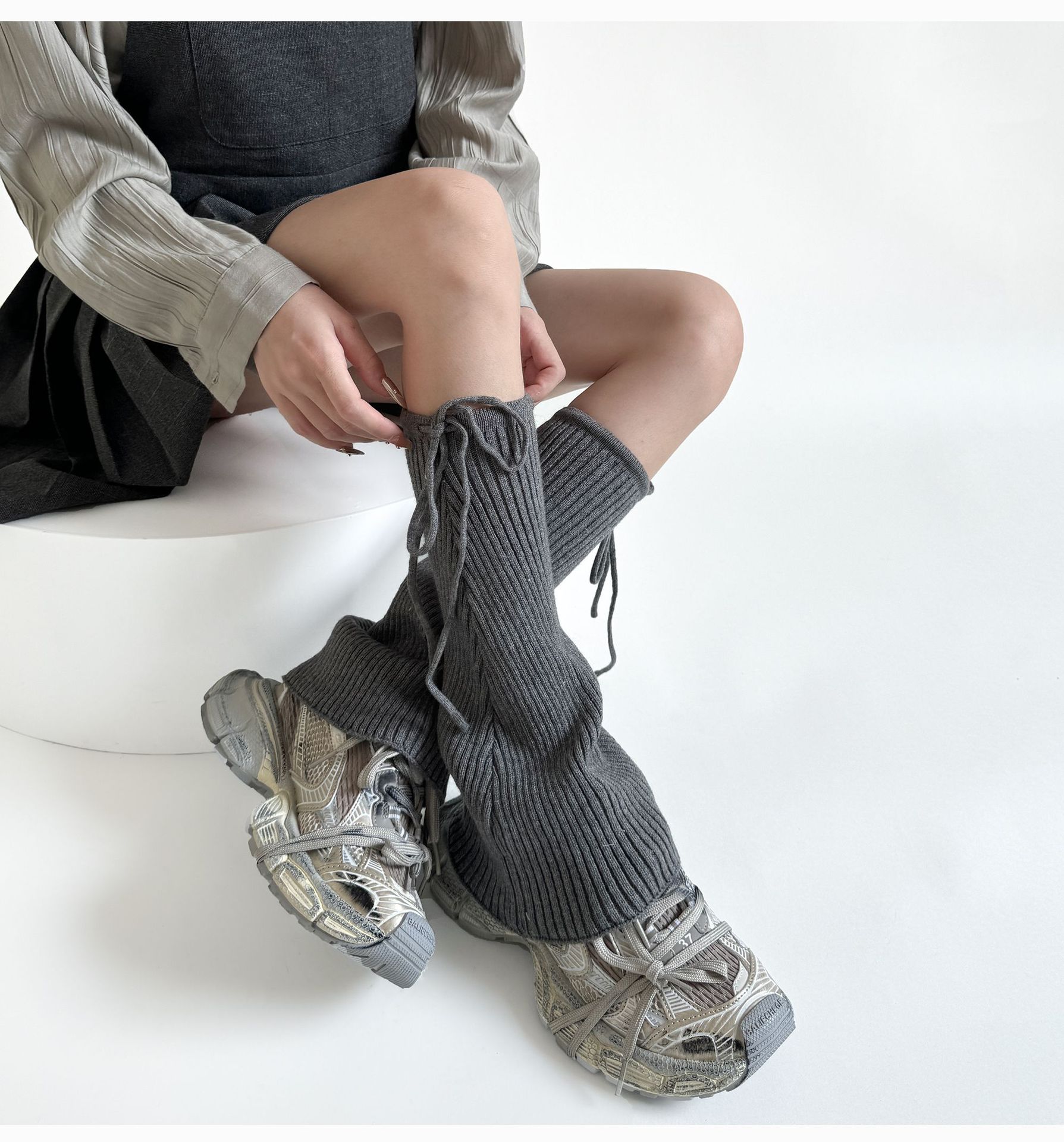 가을과 겨울 회색 양말 여성 틈새 스트랩 디자인 감각 단색 마이크로 파일 다리 커버 우유 흰색 종아리 양말 봄과 가을