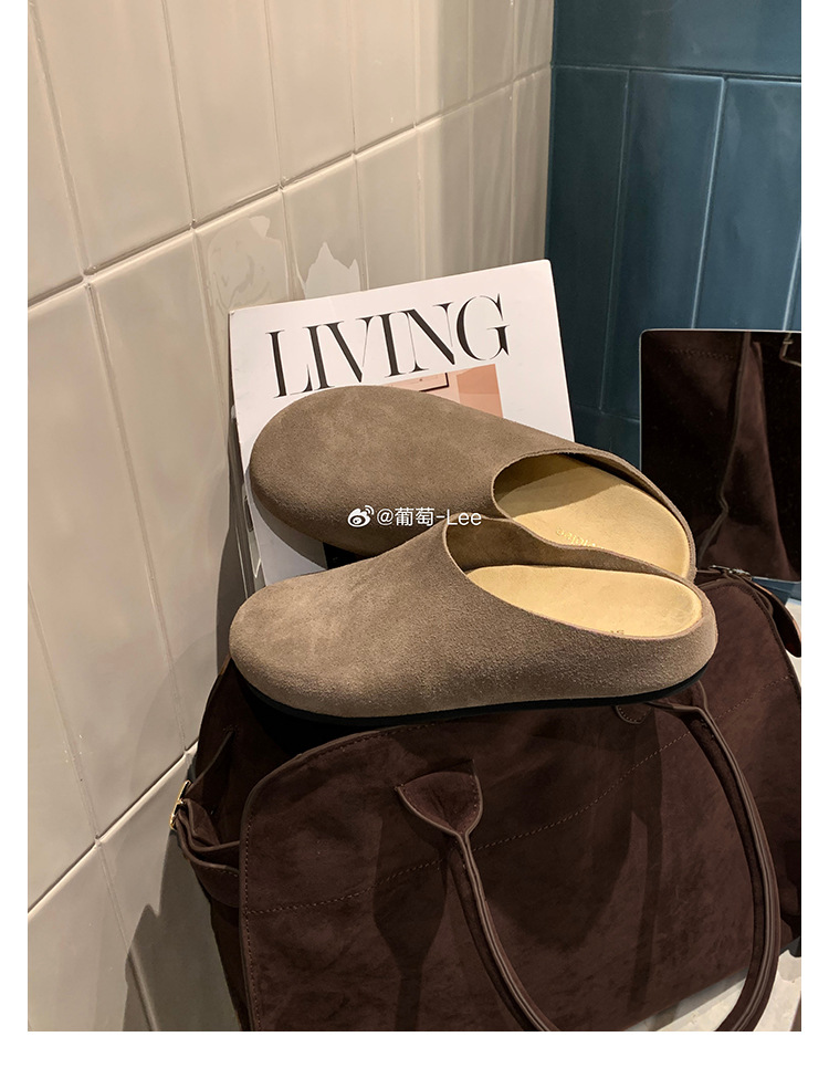 중추의 게으른 스타일 슬립-두꺼운 밑바닥 간단한 하프 팩 두꺼운 가죽 슬립-플랫 바닥 바오 투 슬리퍼