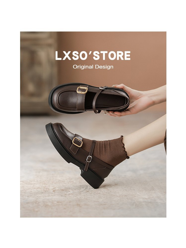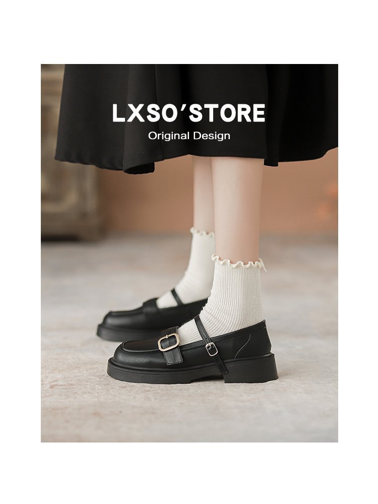 영국 스타일 두꺼운 바닥 작은 가죽 신발 여성의 2024 가을과 겨울 새로운 대학 Jk 싱글 신발 라운드 발가락 원피스 빈티지 메리 제인 신발스토어 가기
