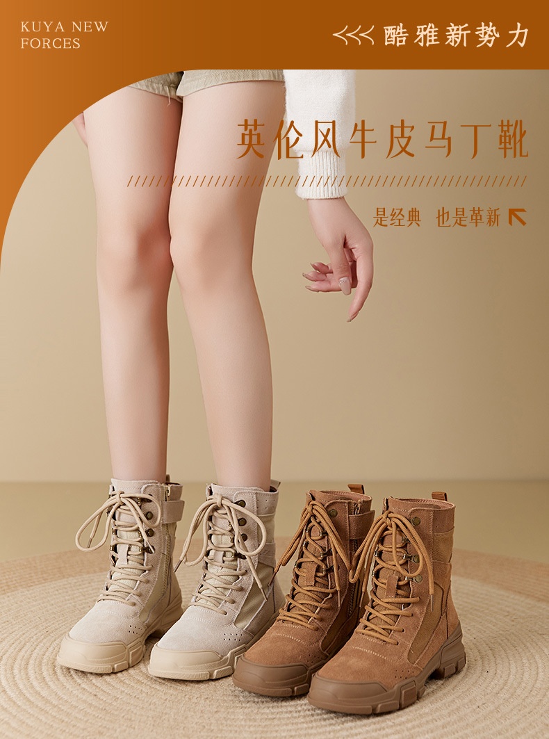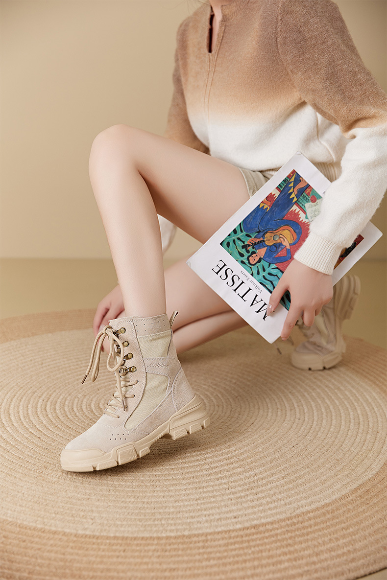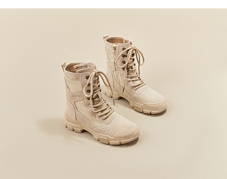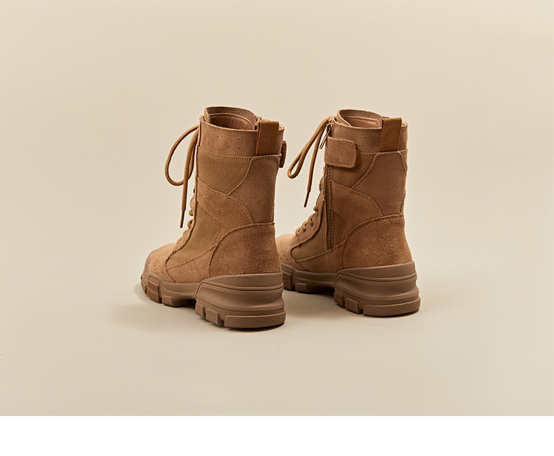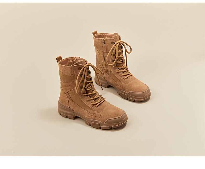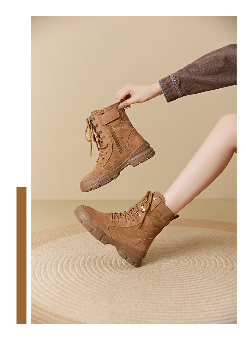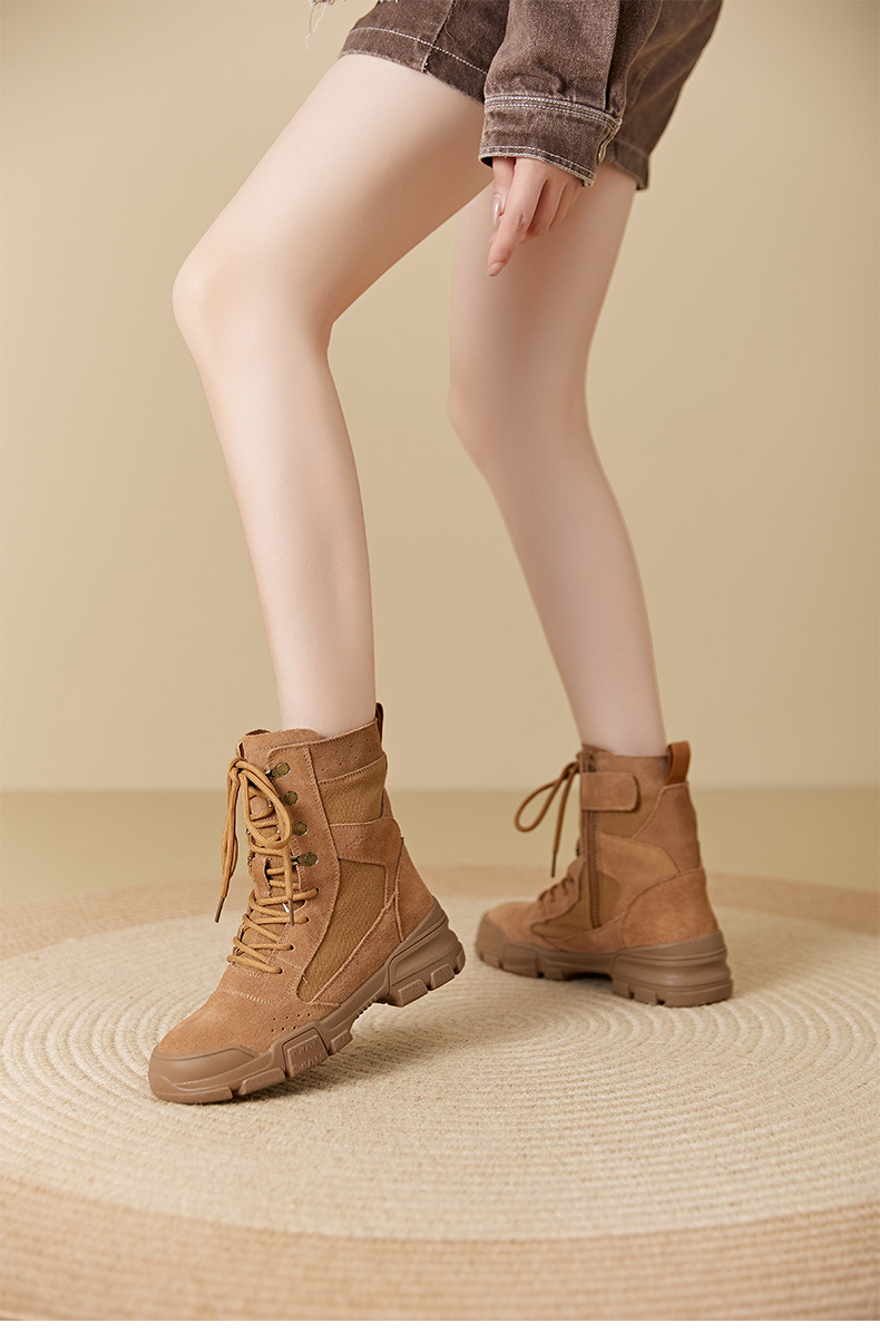 마틴 부츠 여성 2025 봄 두꺼운 밑창 스웨이드 캠핑 전술 작업 부츠 야외 하이킹 하이킹 신발 오토바이 타기