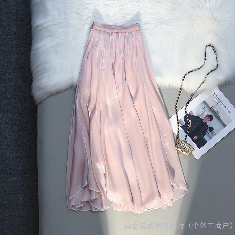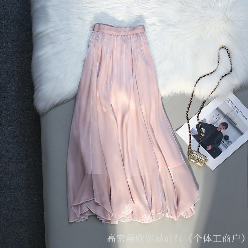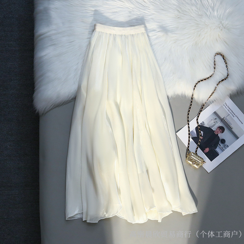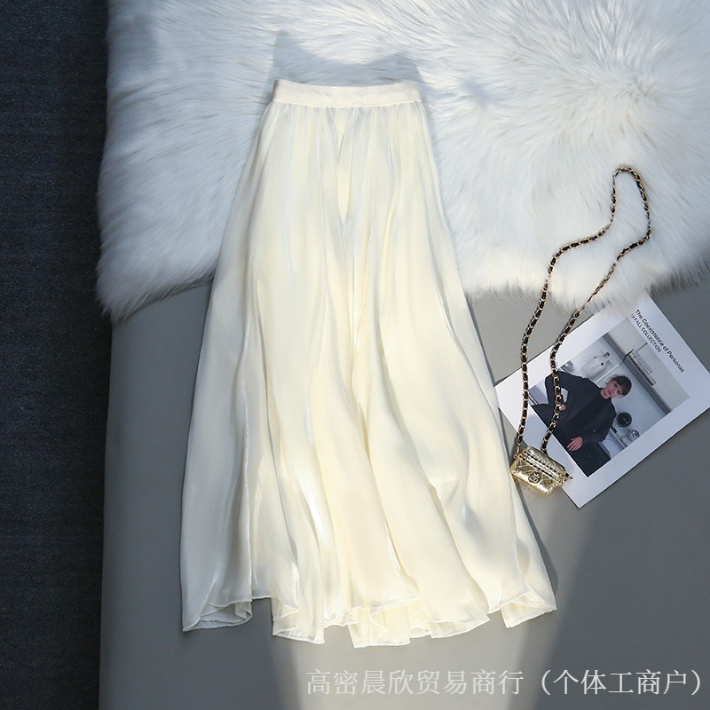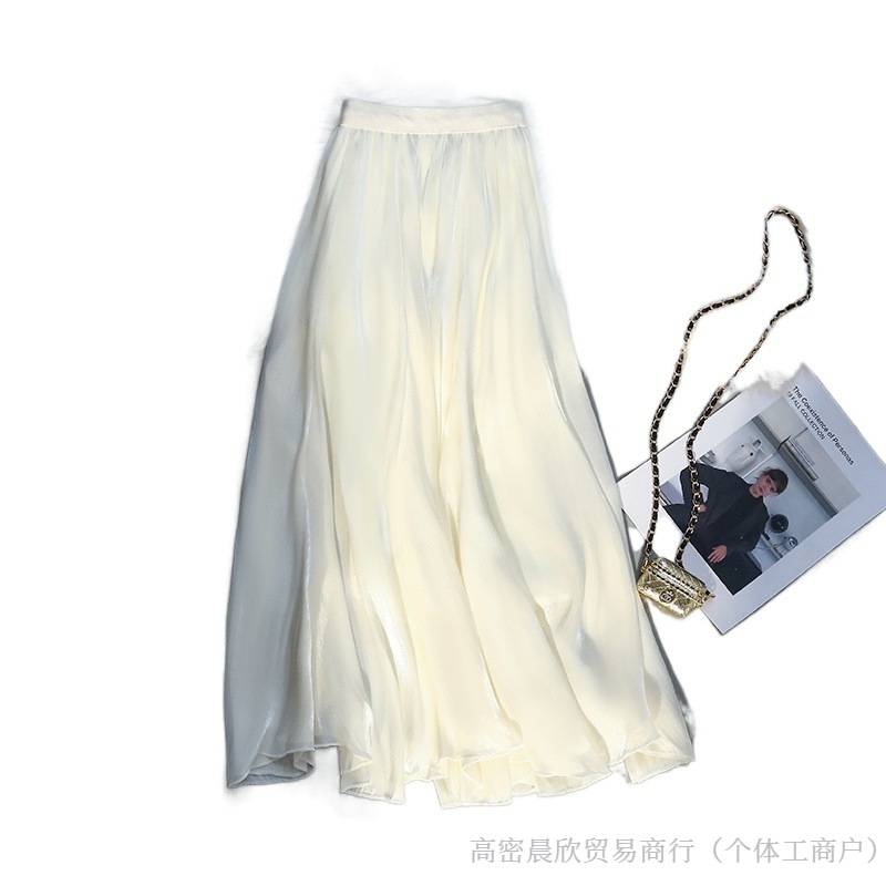 아이보리 거즈 스커트 여성 봄 및 여름 중장 스커트 밀착 감각 기타/기타 A-워드 스커트 대형 스커트