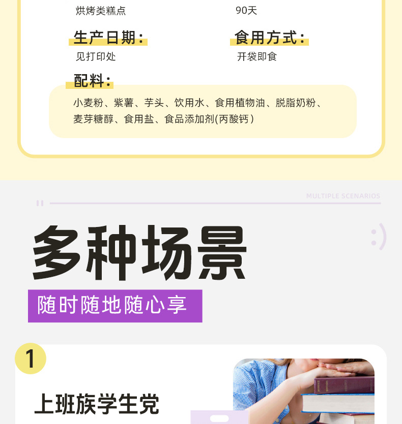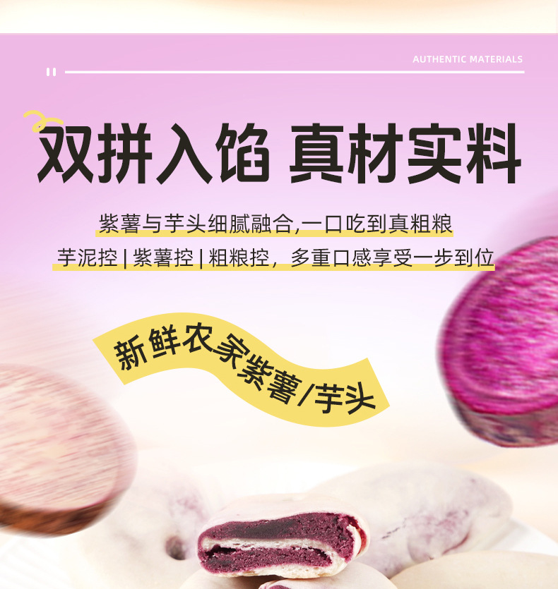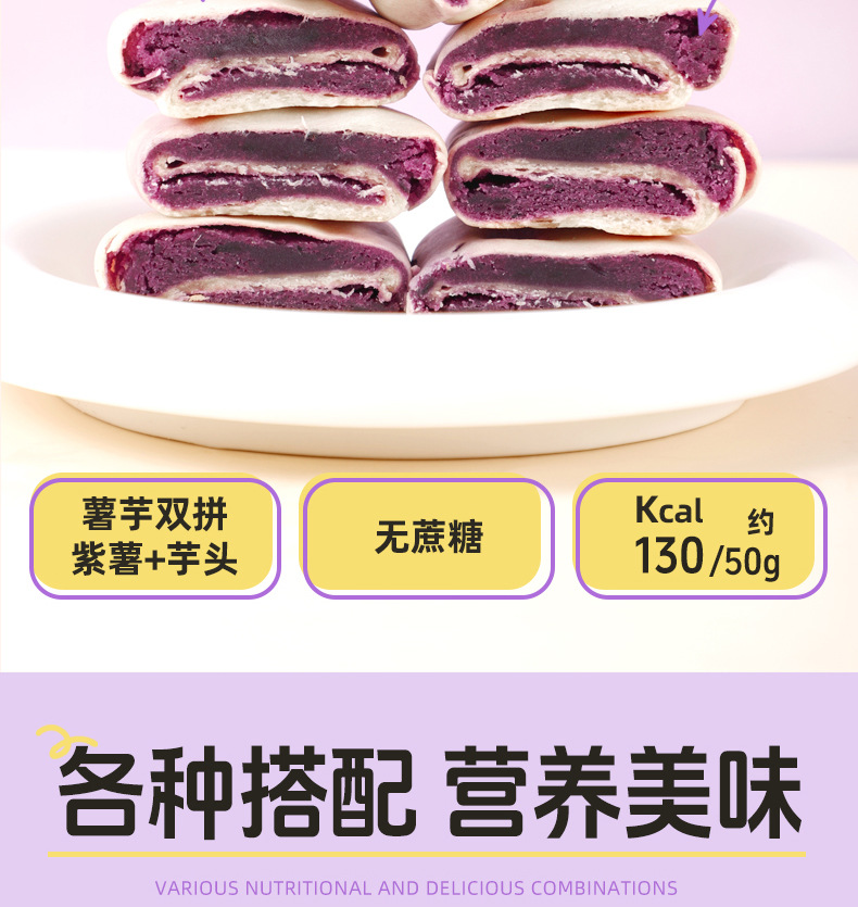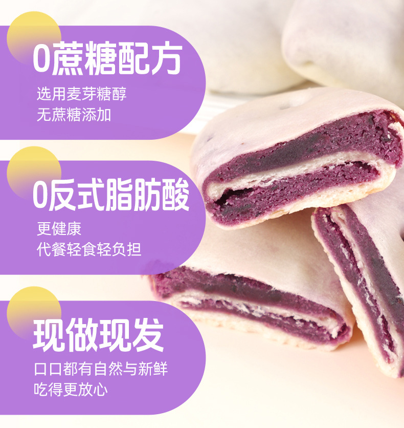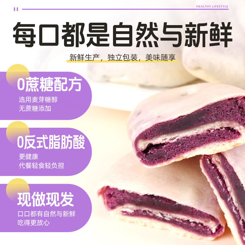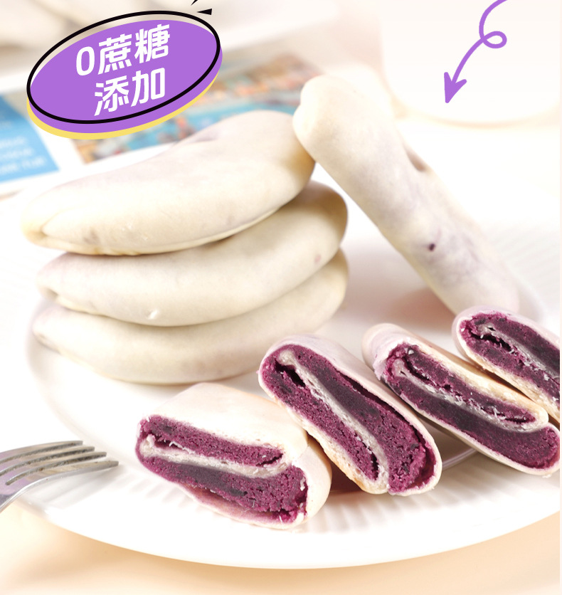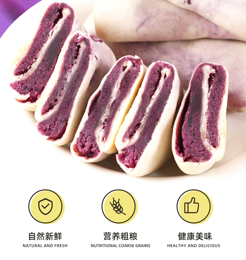 제로 수크로스 퍼플 고구마 타로 머드 케이크 건강한 굵은 곡물 수제 과자 현기증 간식 아침 빵 전체 가방 공장 도매스토어 가기