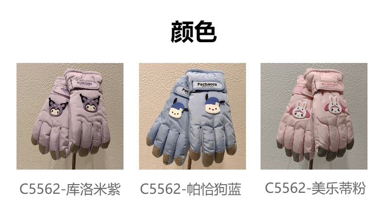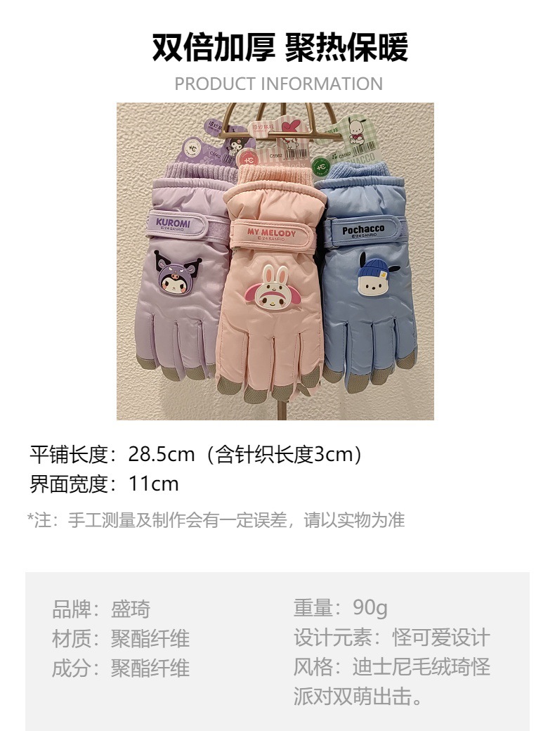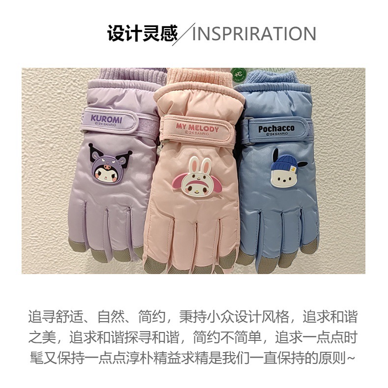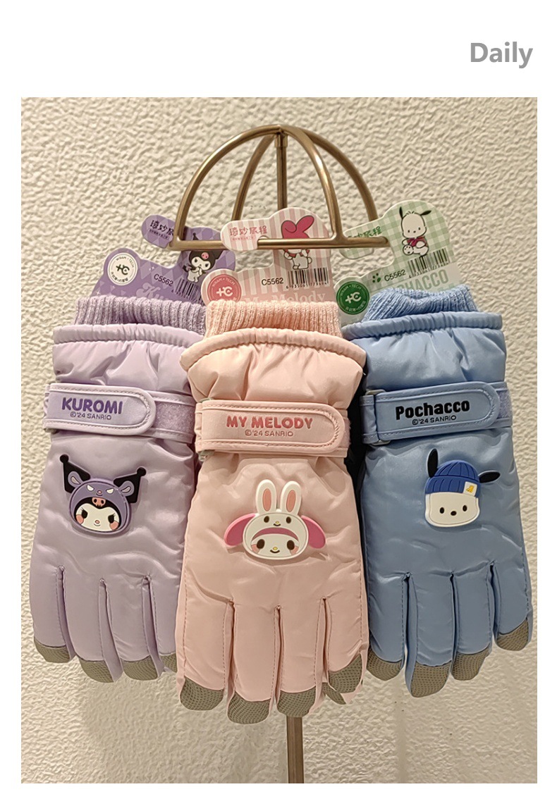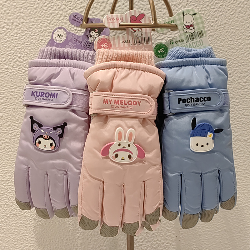 산리오 어린이 스키 장갑 남자와 여자의 겨울 두꺼운 면 반대로 얼음 방풍 따뜻한 만화 귀여운 장갑