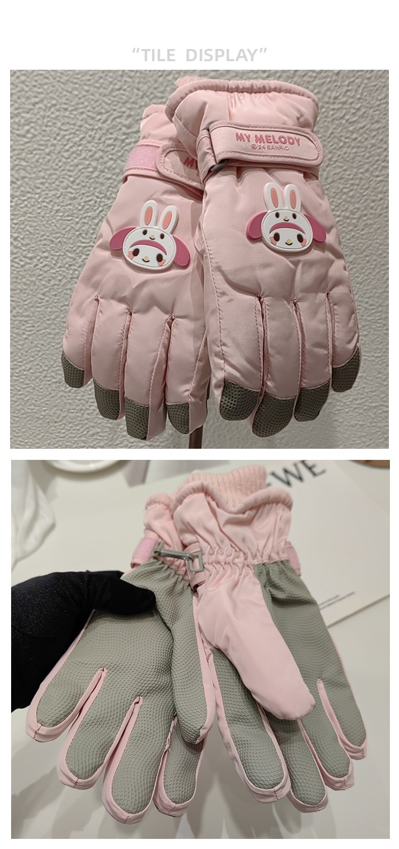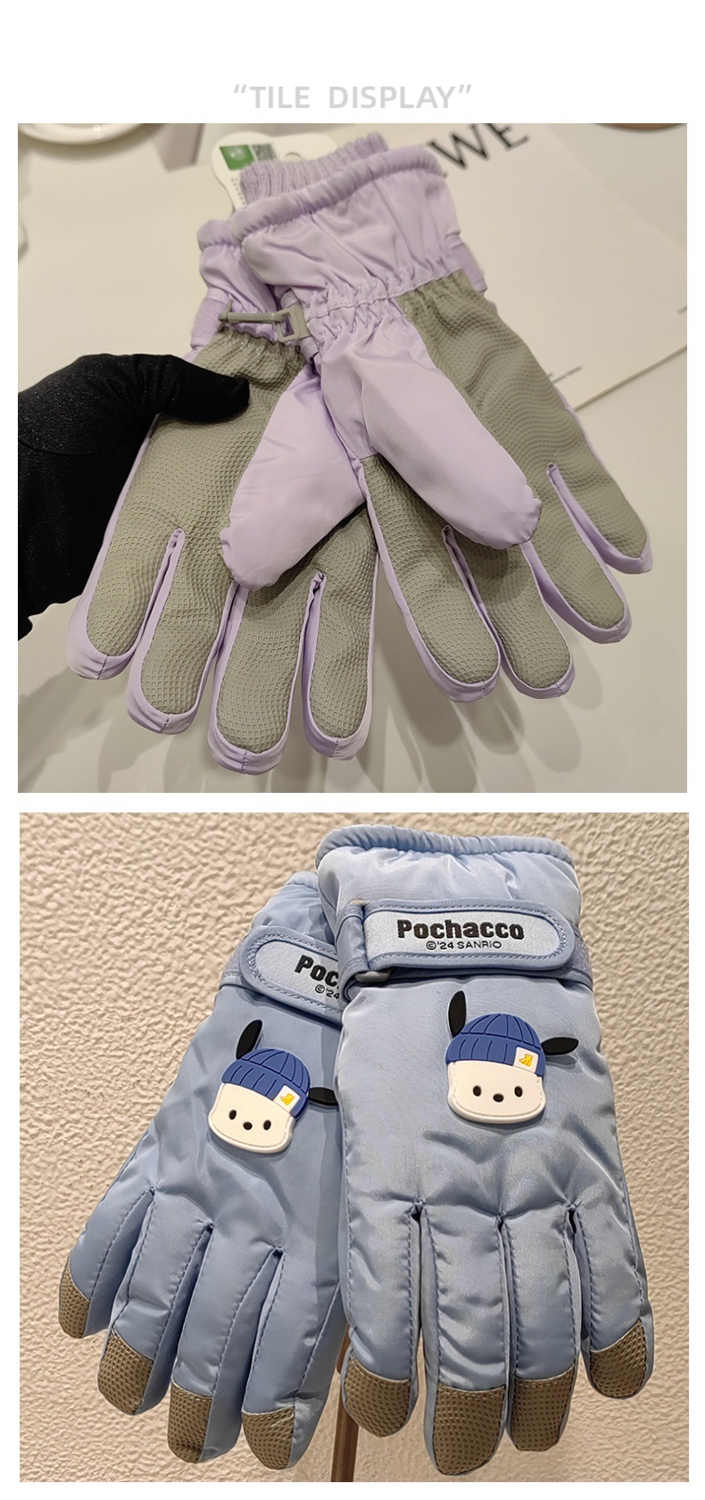 산리오 어린이 스키 장갑 남자와 여자의 겨울 두꺼운 면 반대로 얼음 방풍 따뜻한 만화 귀여운 장갑스토어 가기