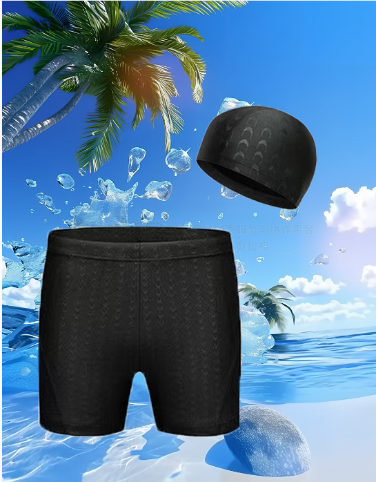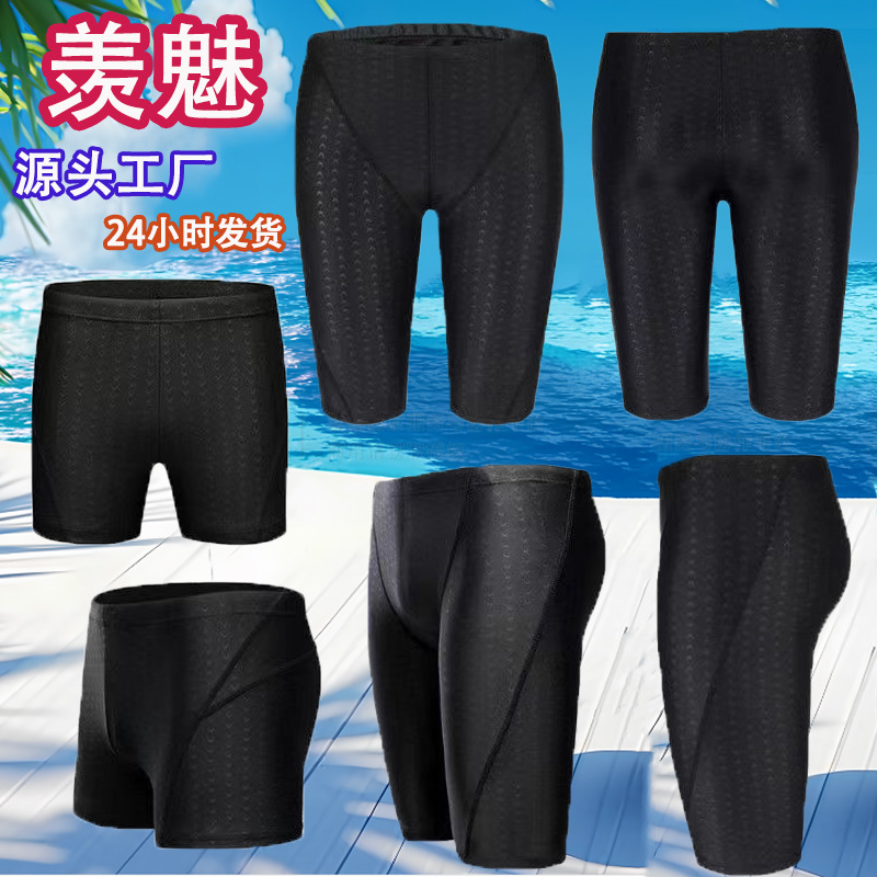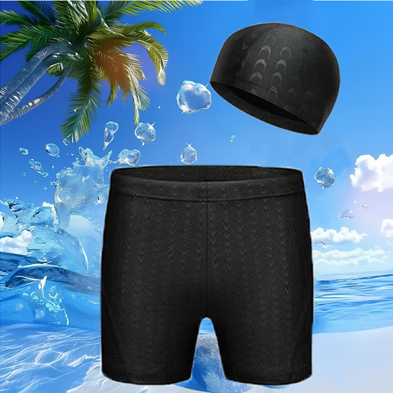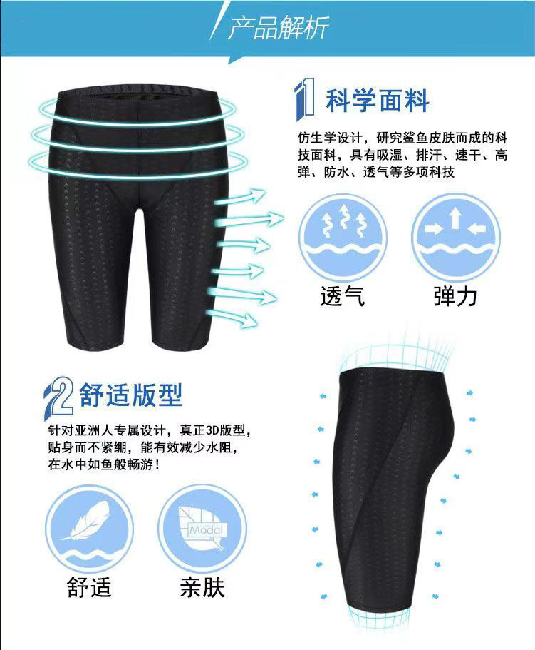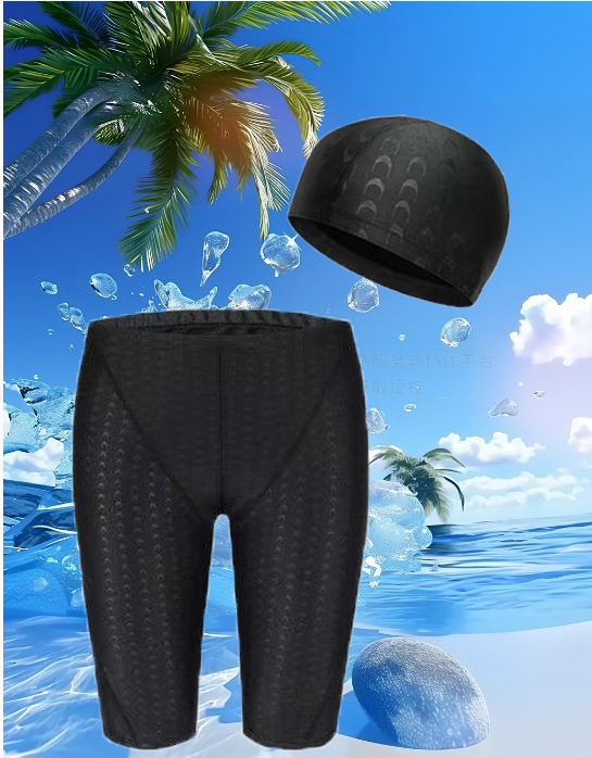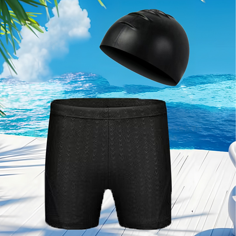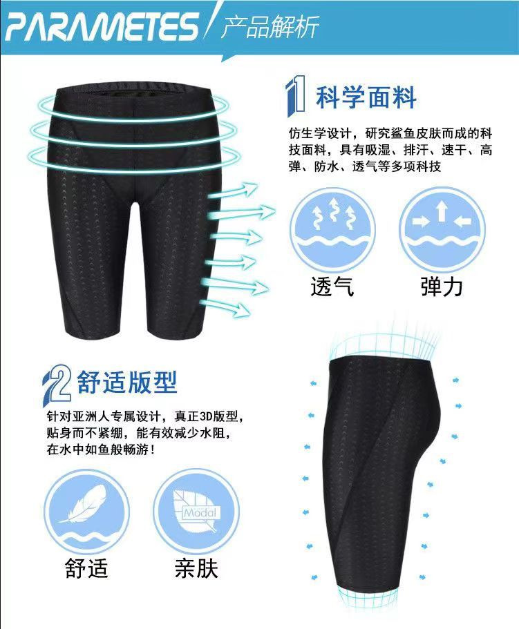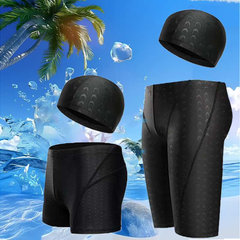 남자 수영 트렁크 빠른 건조 5 점 수영 트렁크 남자 방수 수영복 수영 장비 모조 상어 피부 수영 모자 복서 반바지