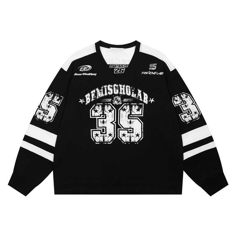 Qilin 2024NEW 남성 레트로 스트리트 스포츠 스타일 알파벳 볼 세트 긴 소매 티셔츠 트렌디 한 커플 루즈 탑 가을
