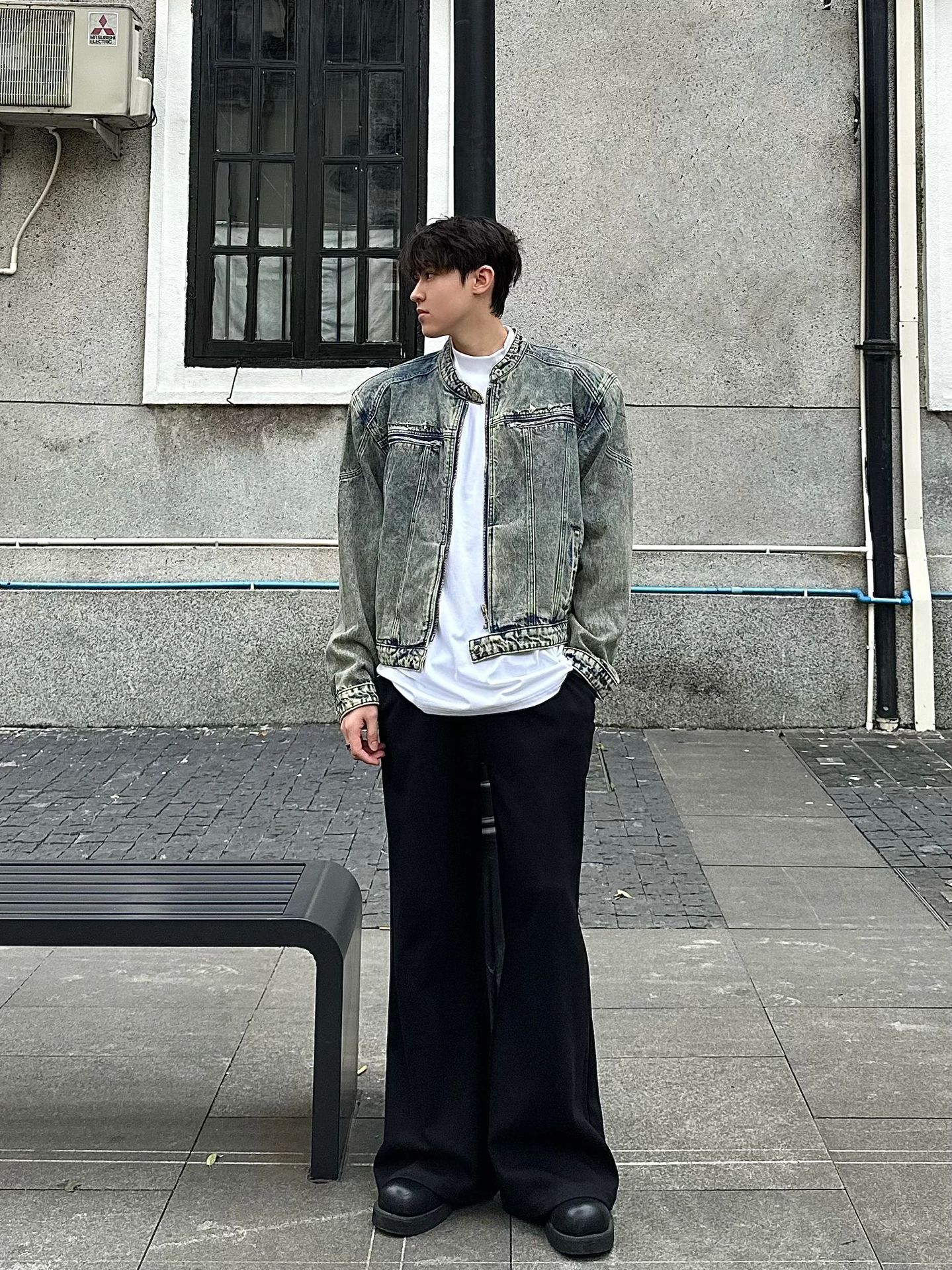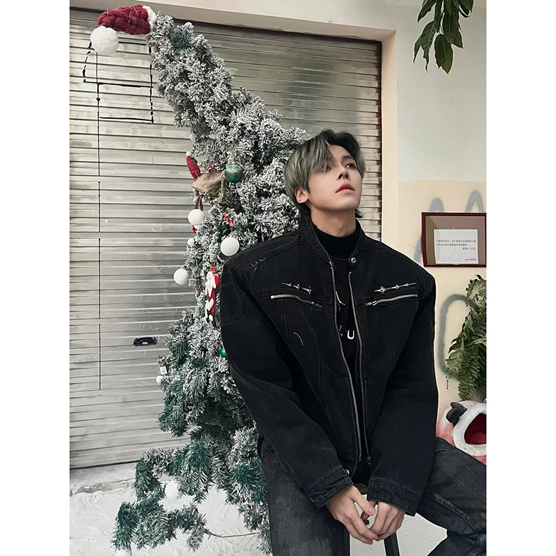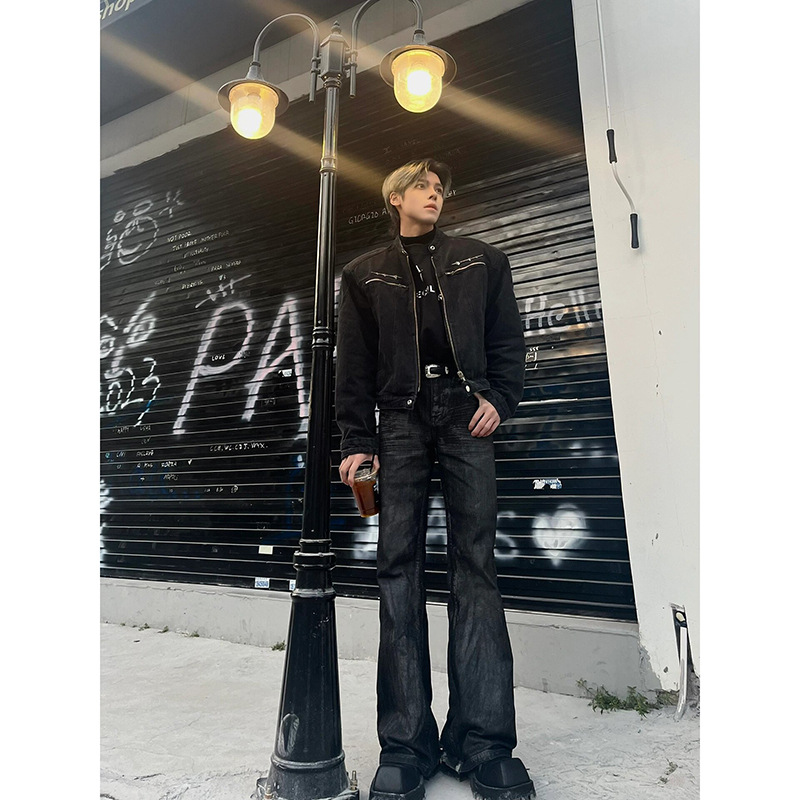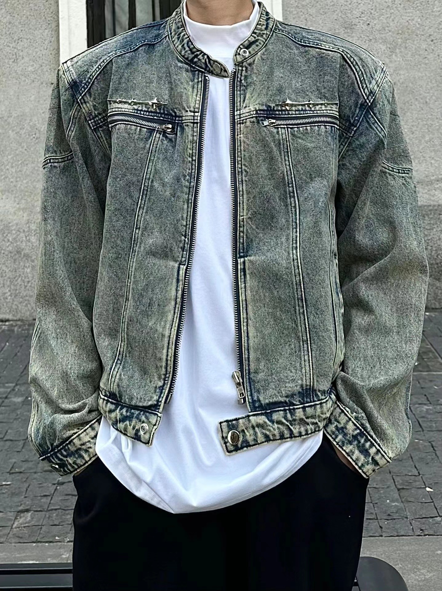 아메리칸 스타일 하이 스트리트 쇼트 데님 재킷 남성 봄과 가을 지퍼 디자인 센스 프론트 숄더 데님 재킷 빈티지 재킷스토어 가기