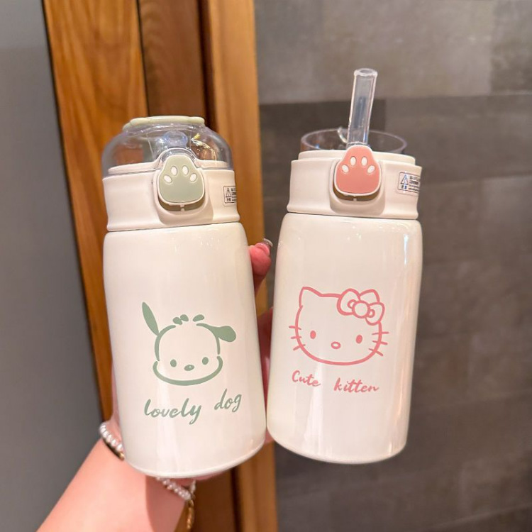 보온병 컵 높은 가치 귀여운 안녕하세요 소녀 고양이 발톱 흡입 컵 316 스테인레스 스틸 휴대용 학생 어린이 컵