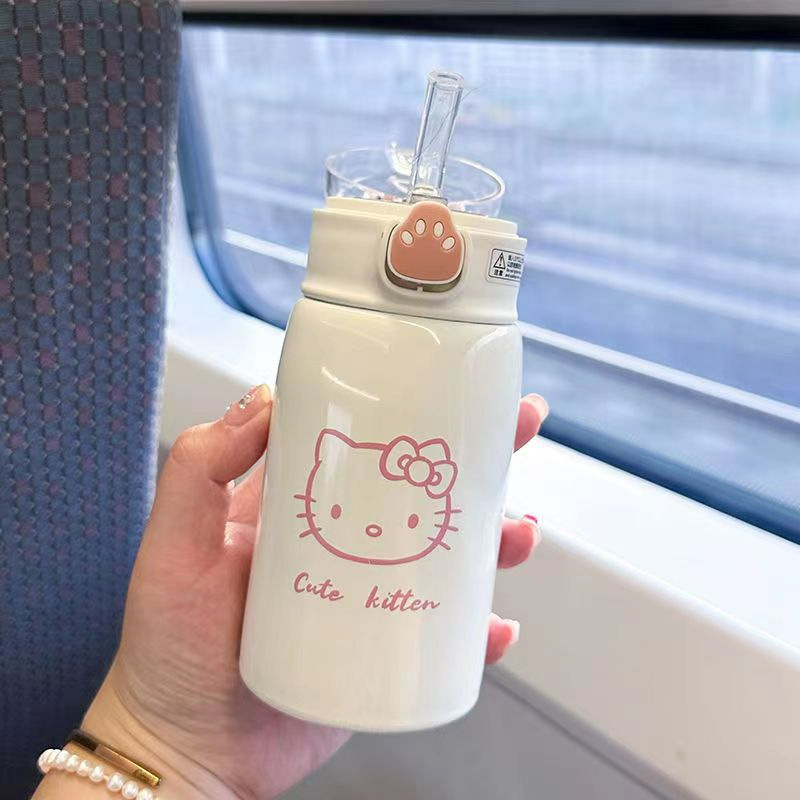 보온병 컵 높은 가치 귀여운 안녕하세요 소녀 고양이 발톱 흡입 컵 316 스테인레스 스틸 휴대용 학생 어린이 컵스토어 가기