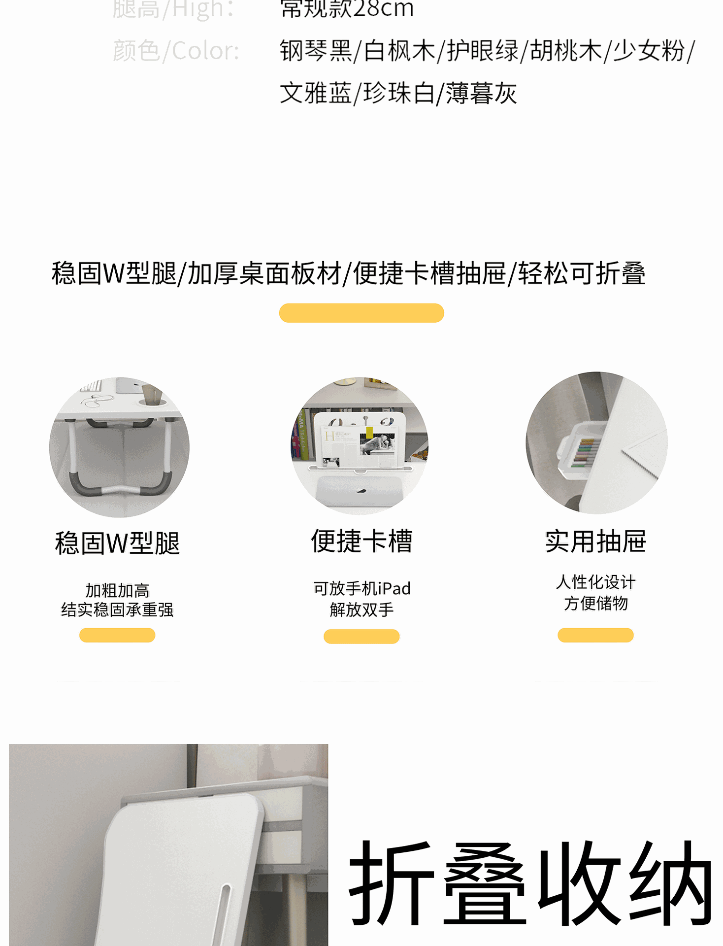 접이식 테이블 작은 테이블 학생 책상 작은 식탁 집 침실 침대 식사 테이블 기숙사 컴퓨터 책상