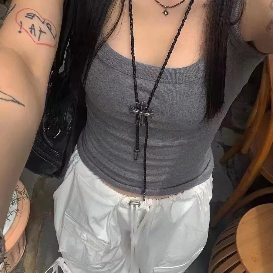 • 실버 크로스 소가죽 로프 목걸이 X4101B