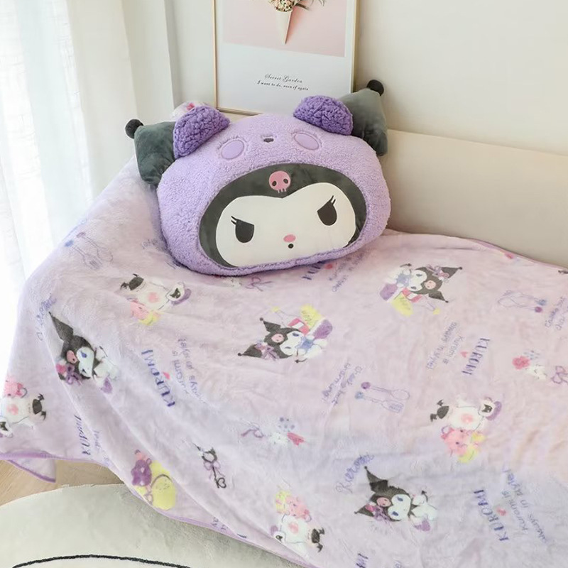 P66D 귀여운 계피 개 Parchal 개 보라색 Deviruchi 베개 퀼트 플란넬 인쇄 담요 Nap Merle Di스토어 가기