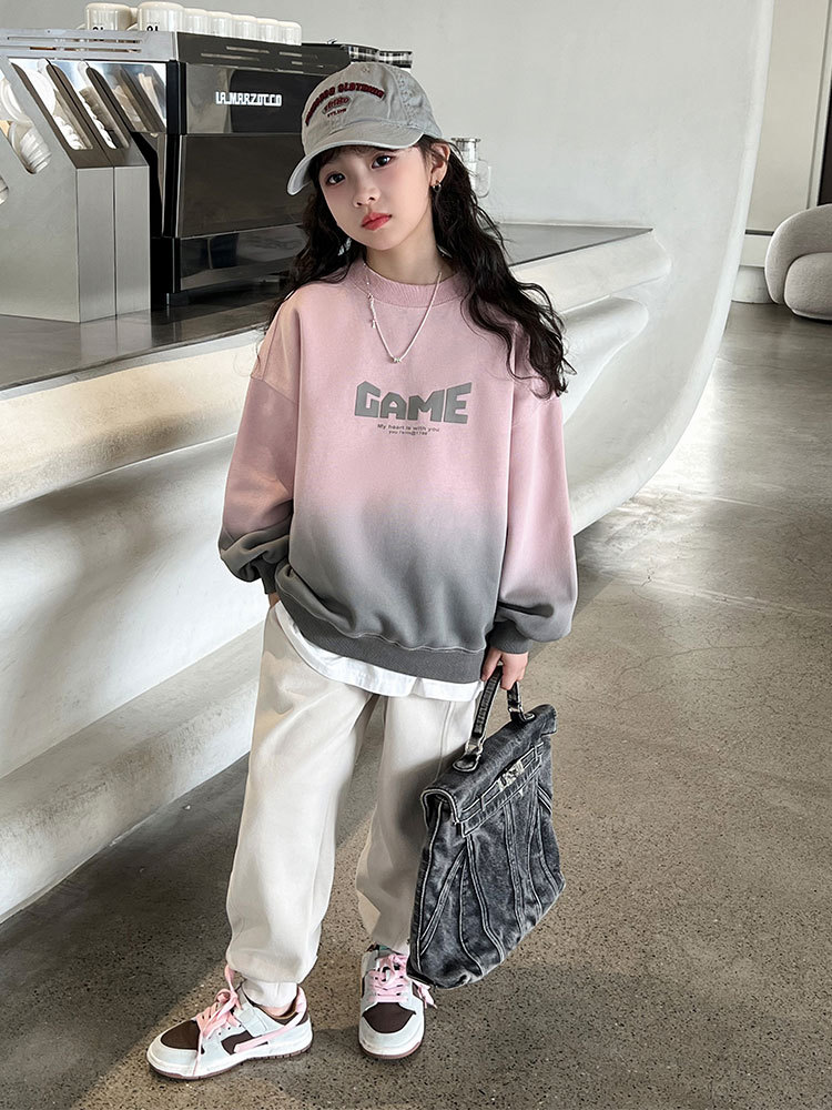 소녀들의 봄 가을의 땀 2024 새로운 어린이 한국식 유행 여성 빅 어린이 인터넷 인기 가을 긴팔 탑스토어 가기