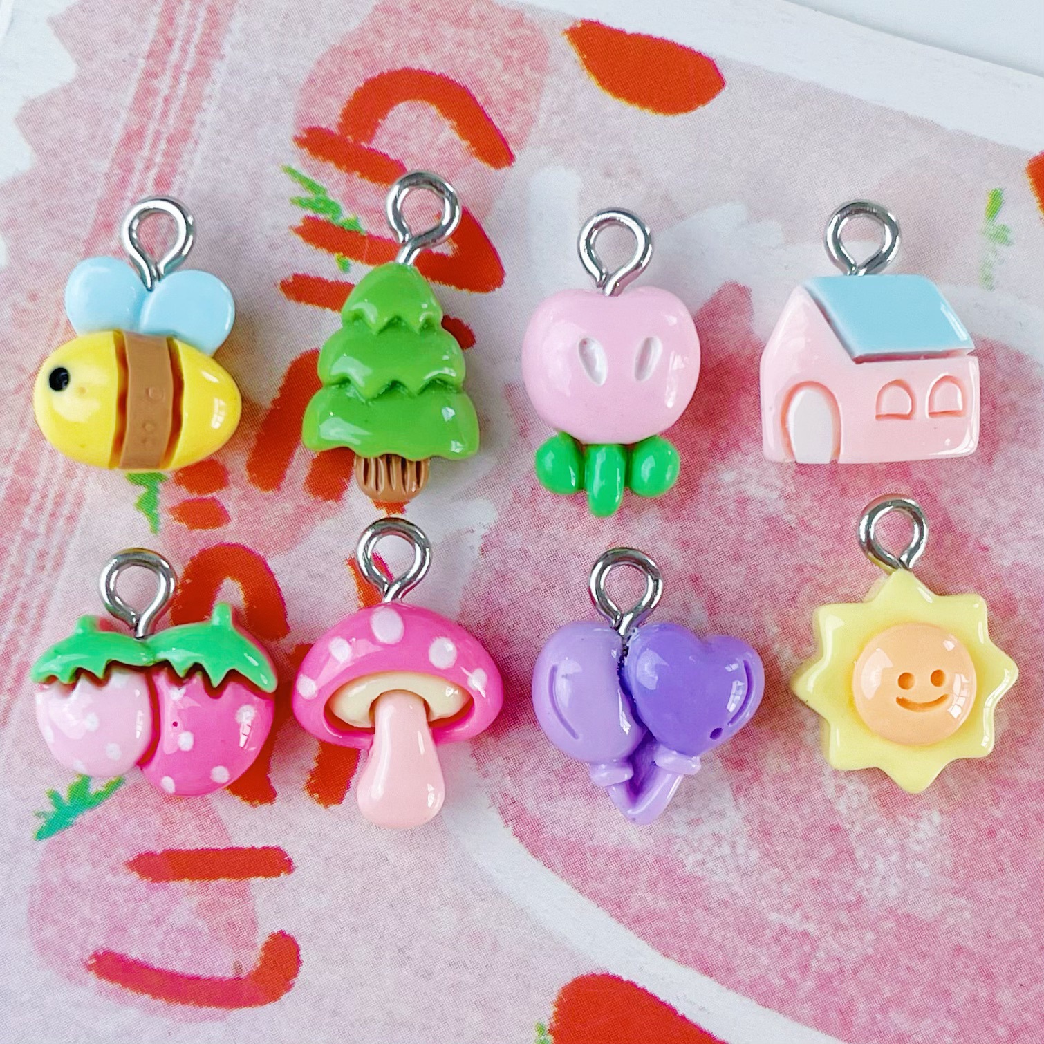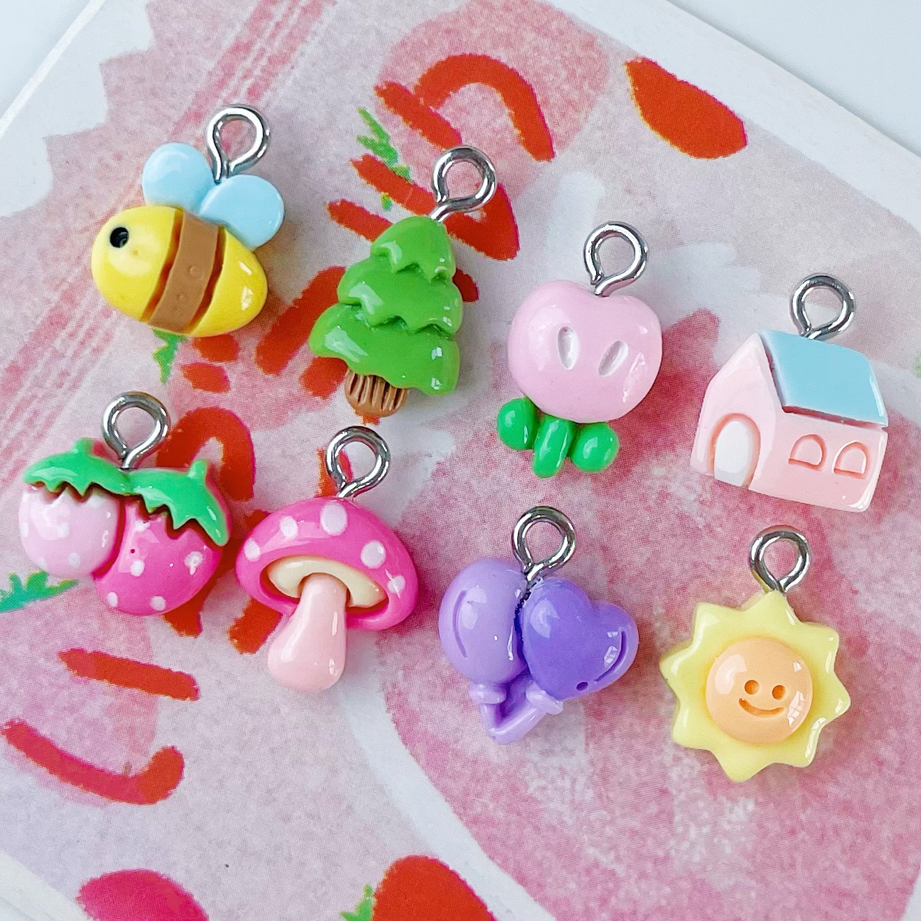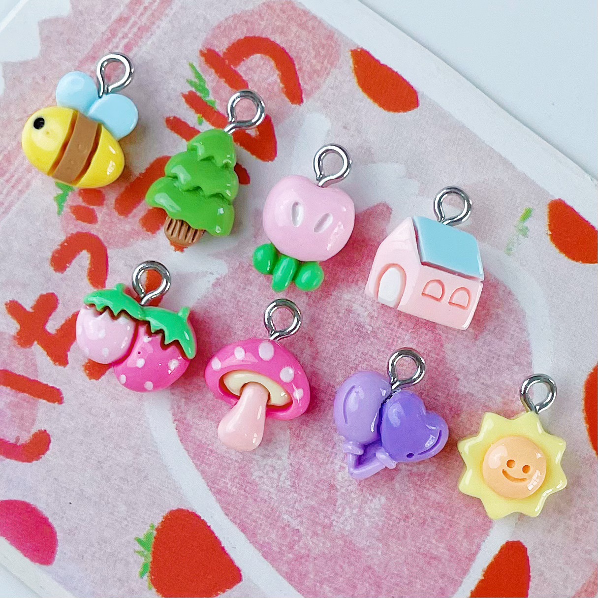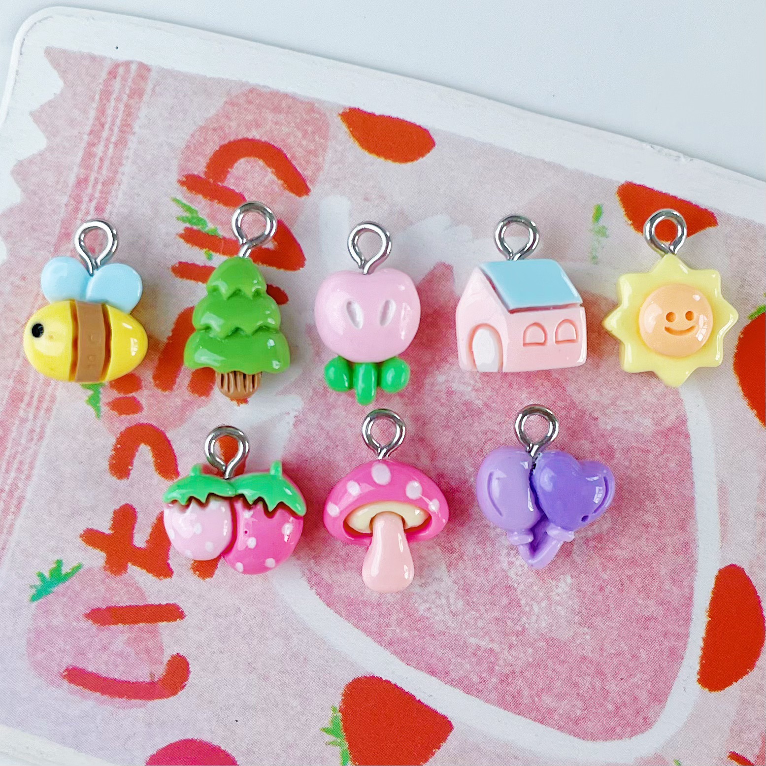 미니 광택 숲 사랑 풍선 꿀벌 버섯 펜던트 DIY 보석 펜던트 가방 키 체인 배치스토어 가기