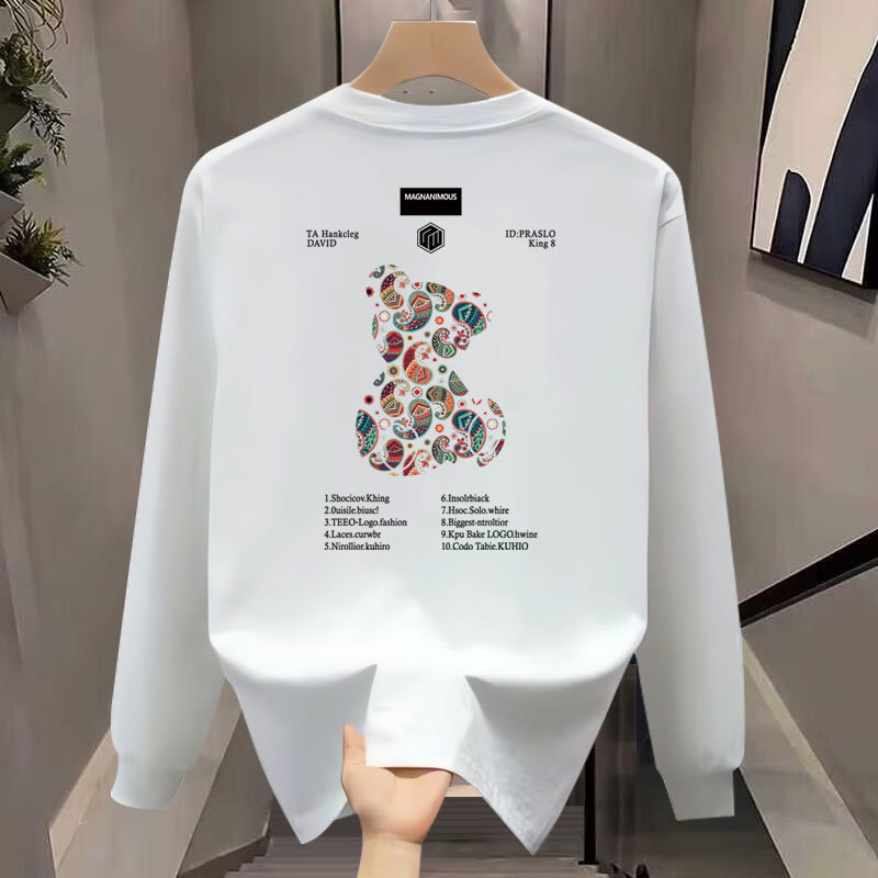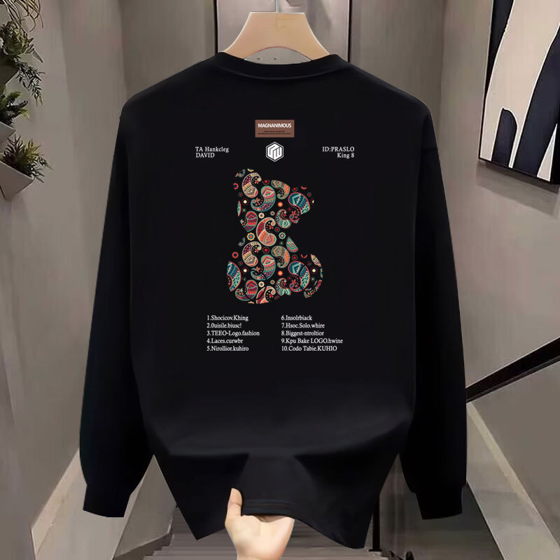 무거운 하이 엔드 트렌디 브랜드 퓨어 코튼 티셔츠 남성베이스 셔츠 봄과 가을 긴 소매 유행 가을과 겨울 남성과 여성의 둥근 목 스웨터