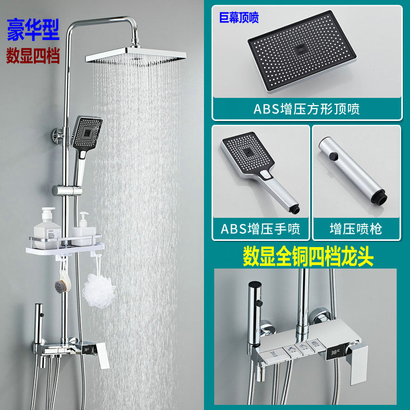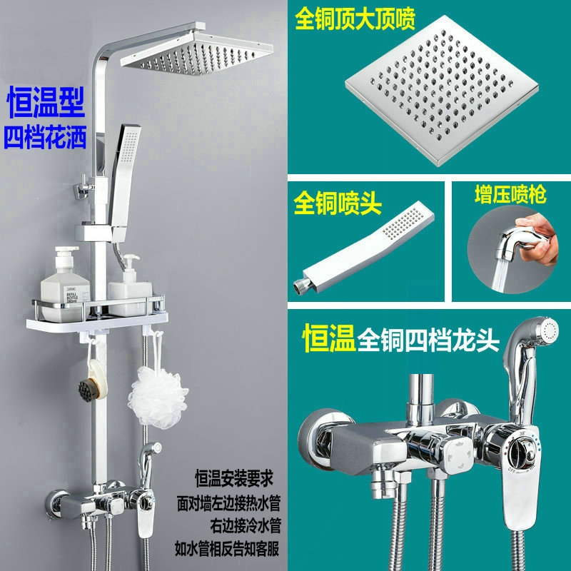 새로운 전체 구리 샤워 세트 가정용 욕실 일정한 온도 샤워 장치 압축 비 샤워 헤드