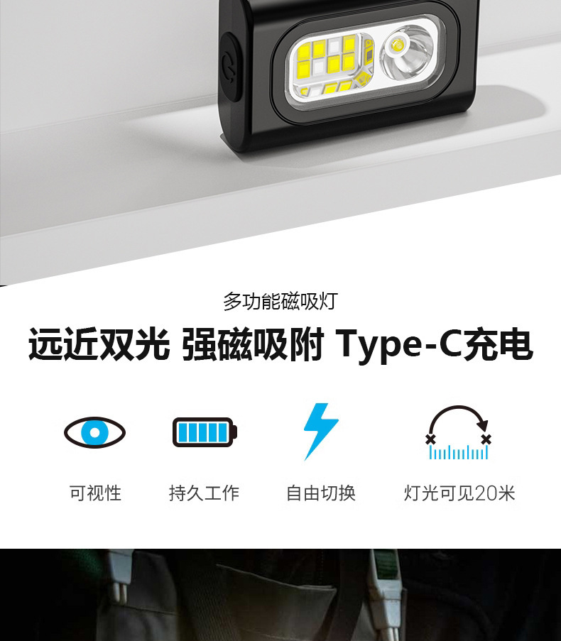 • ABS 클립 블랙-1200LM 헤드라이트/가슴등 백색광-빨간색 및 파란색 경고 박스형
