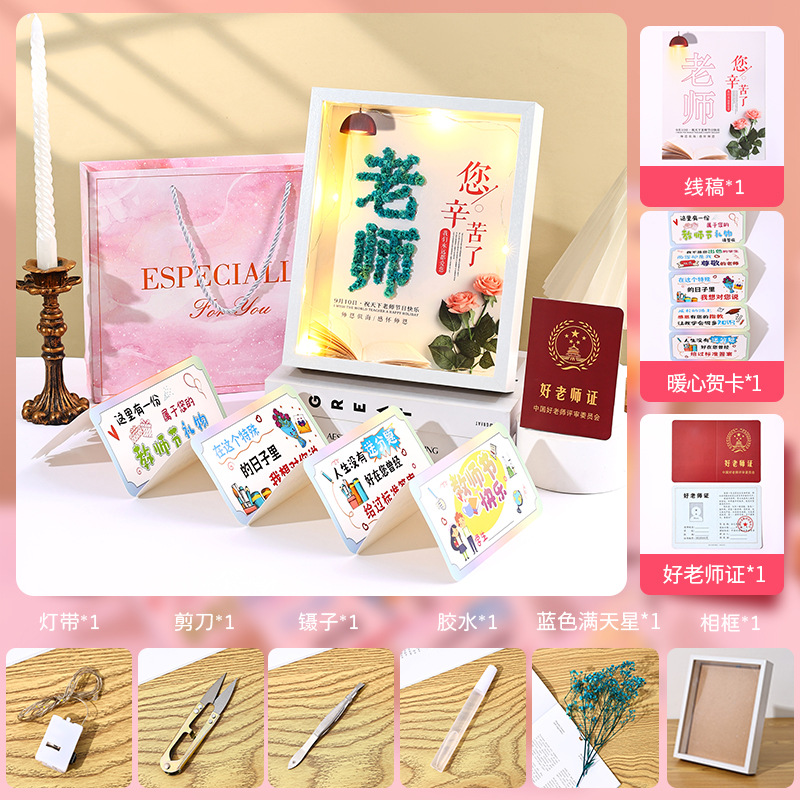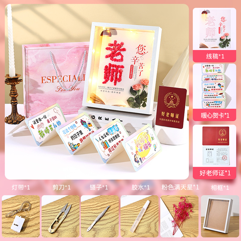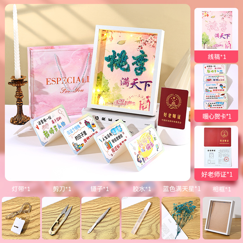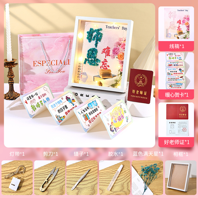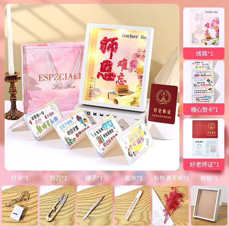 선생님을위한 교사의 날 선물 말린 꽃 Gipsophila 수제 DIY 사진 프레임 창조적 인 장식 휴일 선물스토어 가기