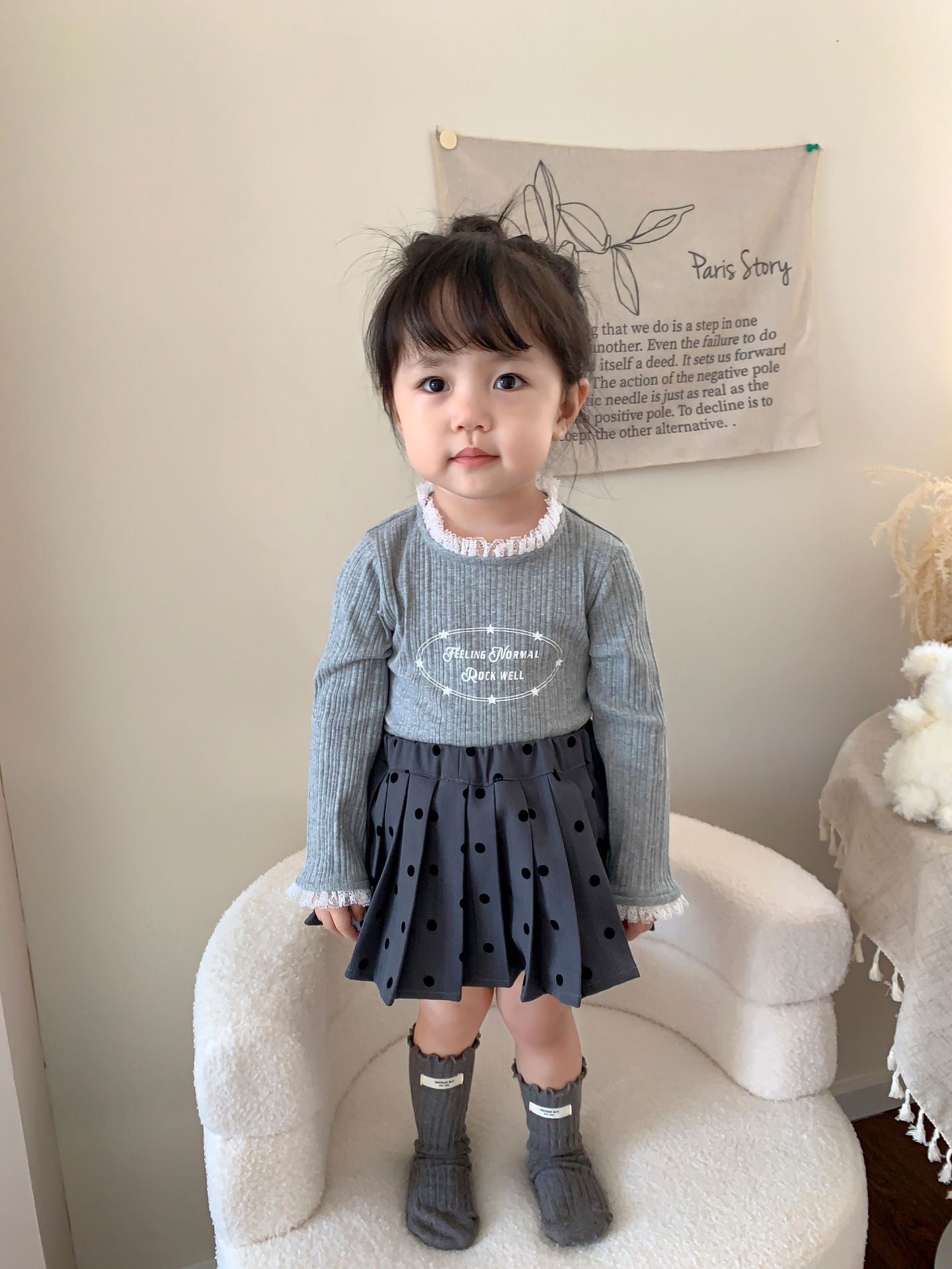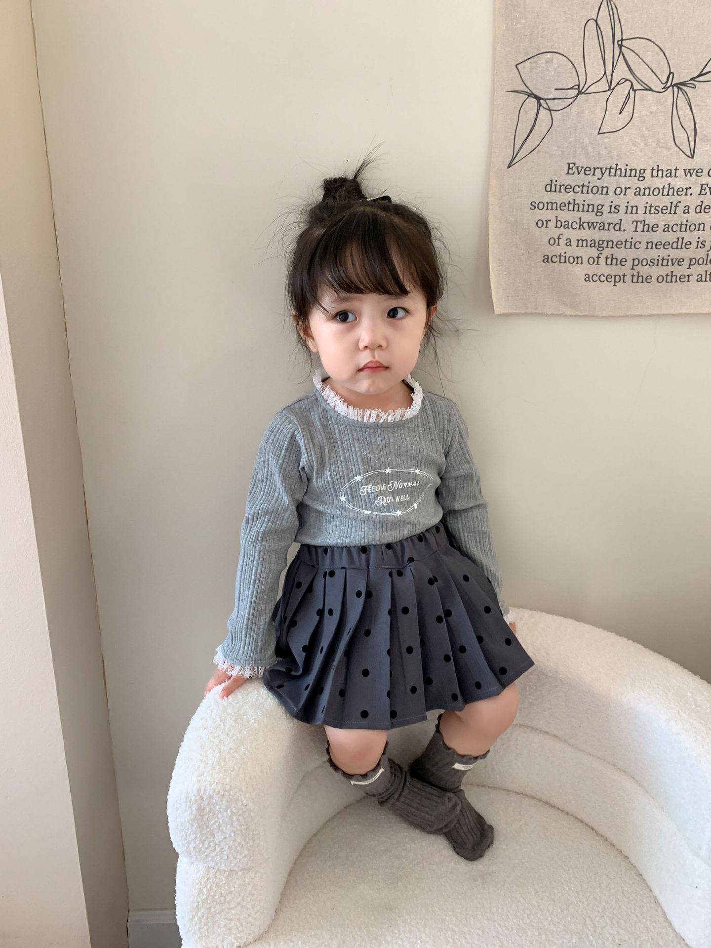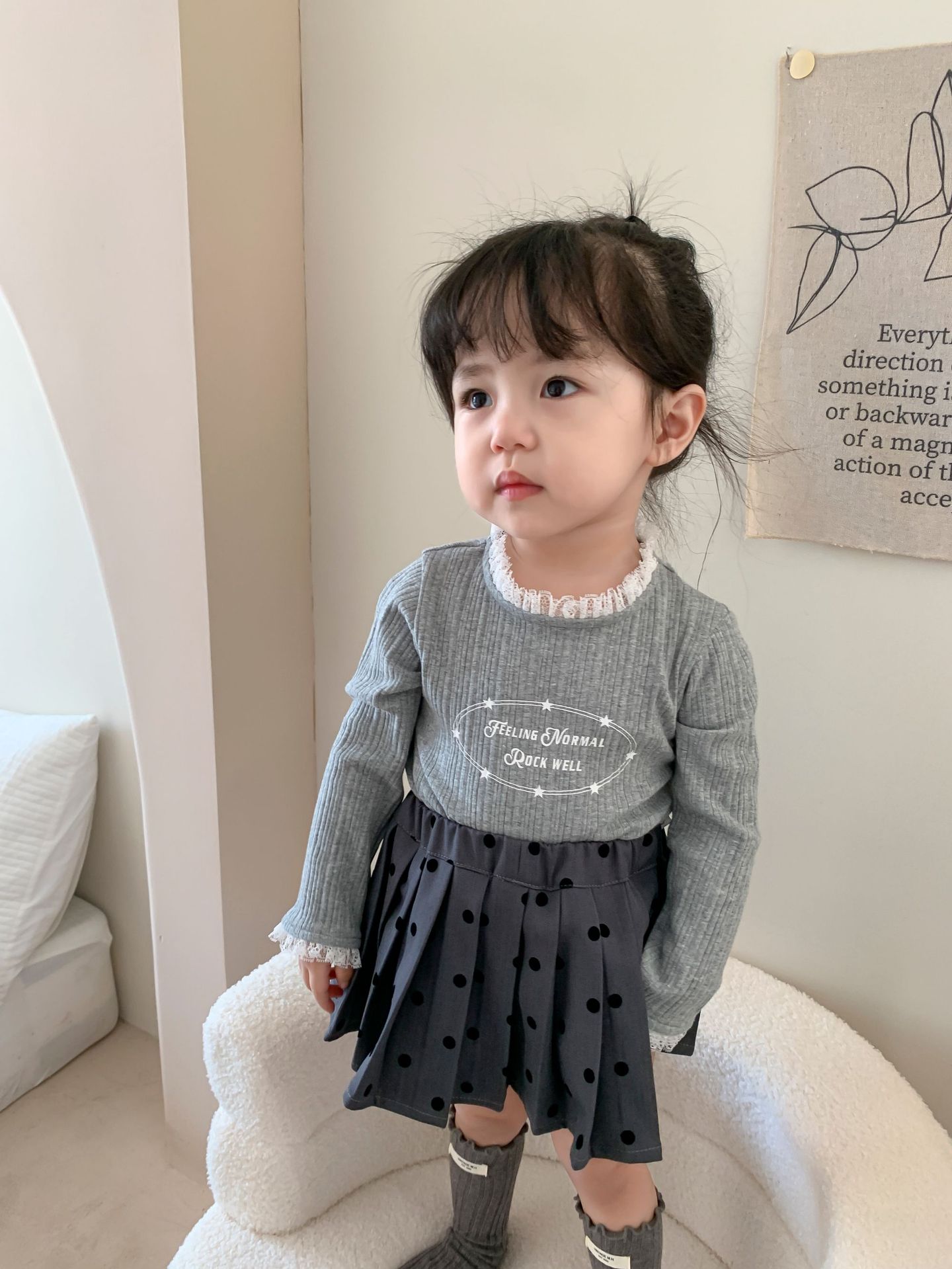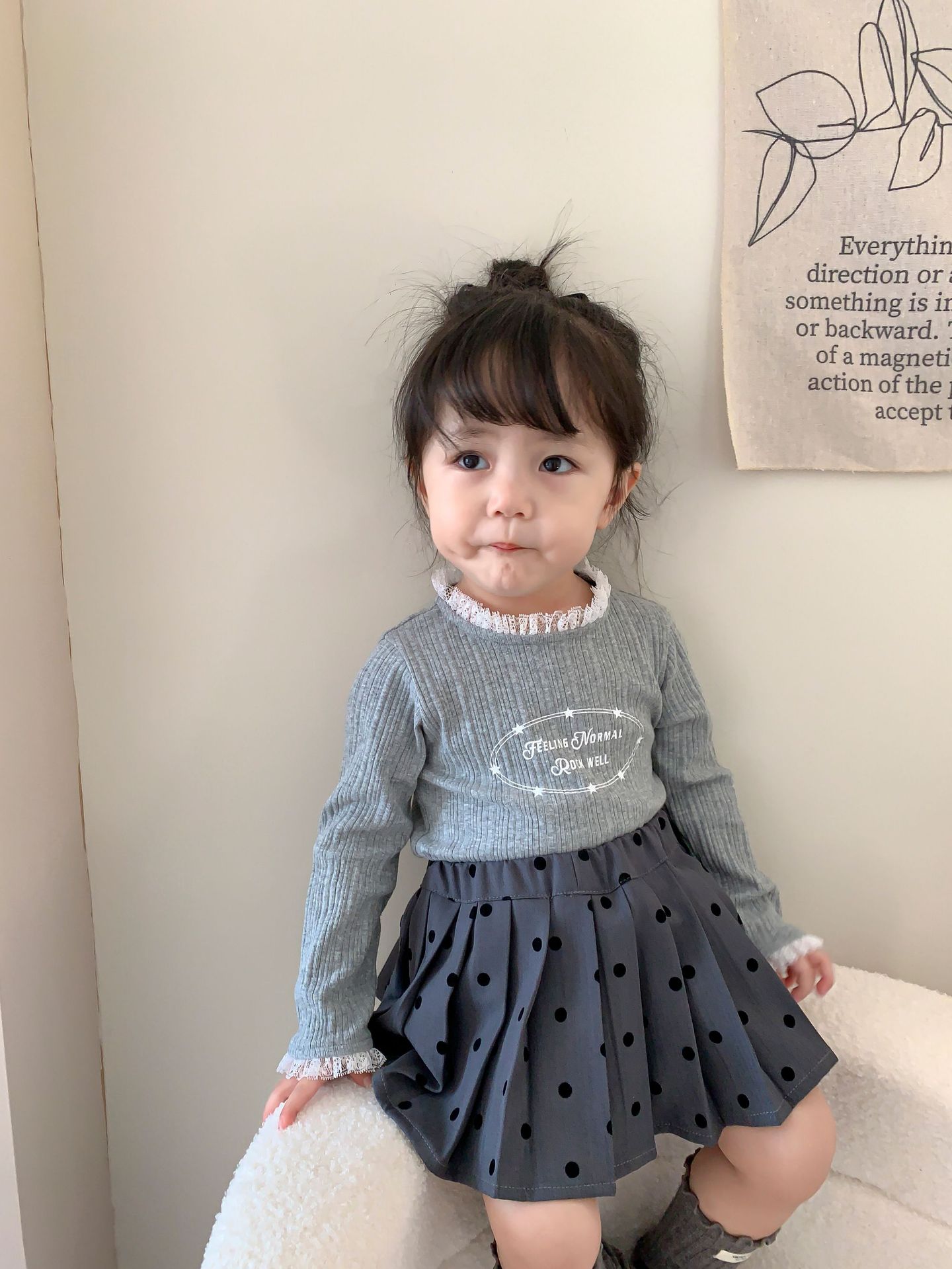 클리어런스 스타일] 사탕수수와 감자 아동복 여아 긴팔 양복 가을 아동 한국식 티셔츠 주름 치마 아기 옷스토어 가기