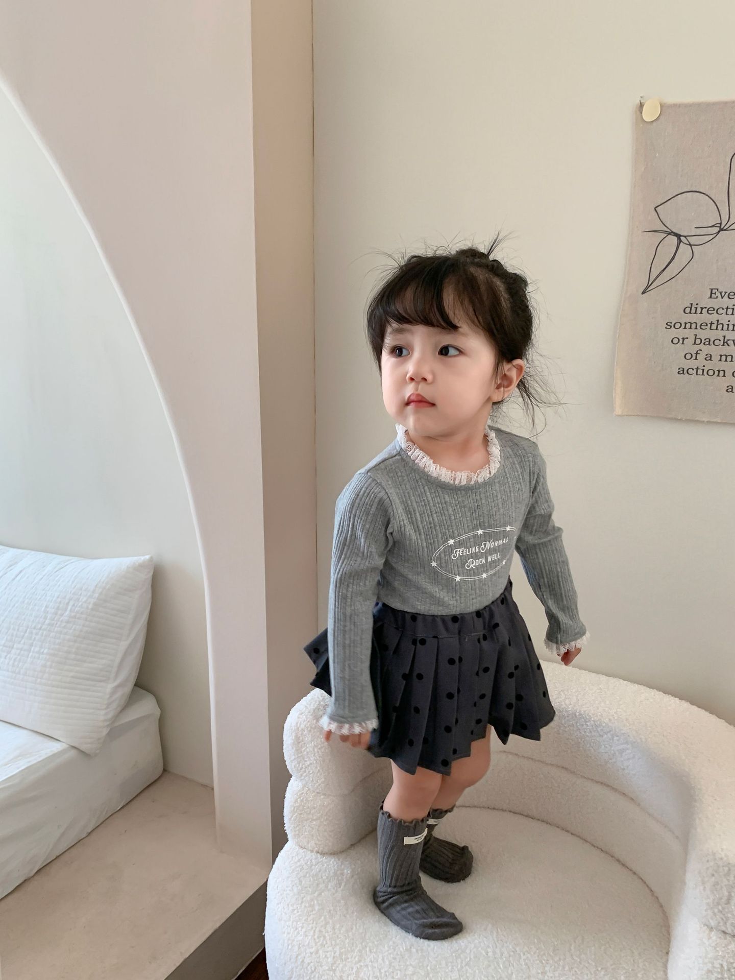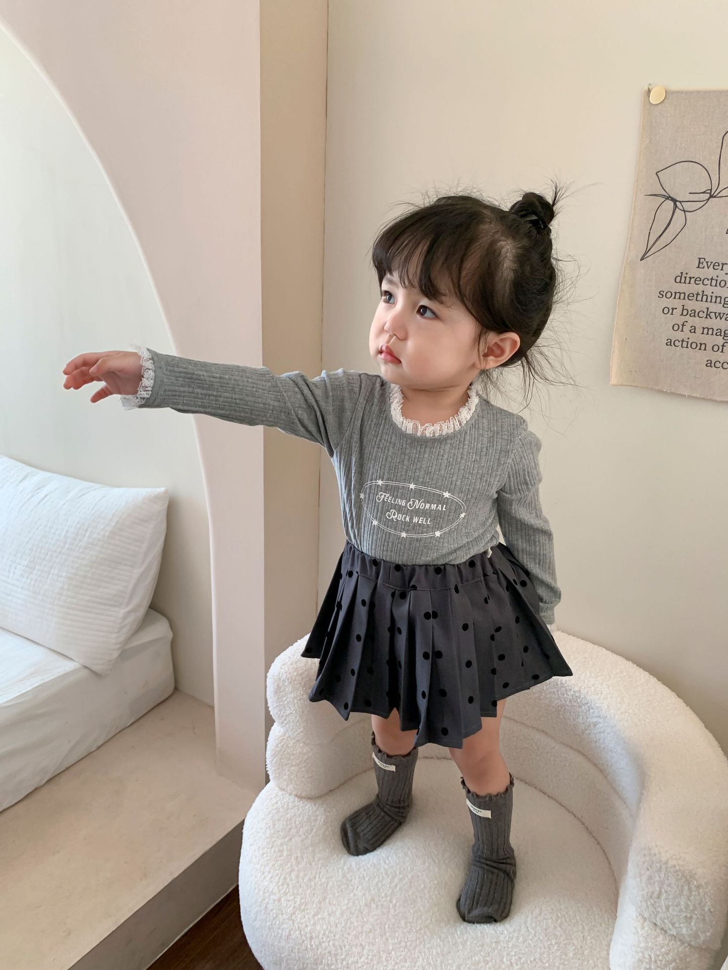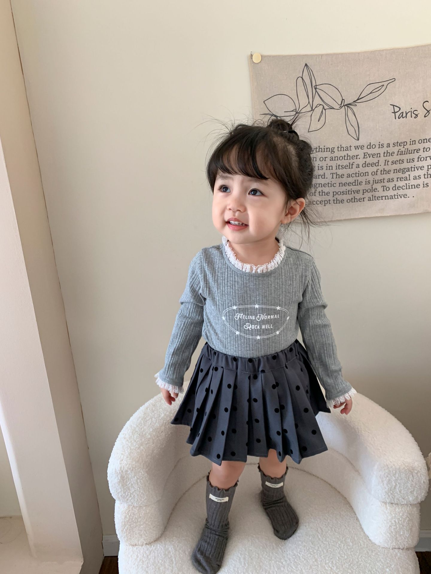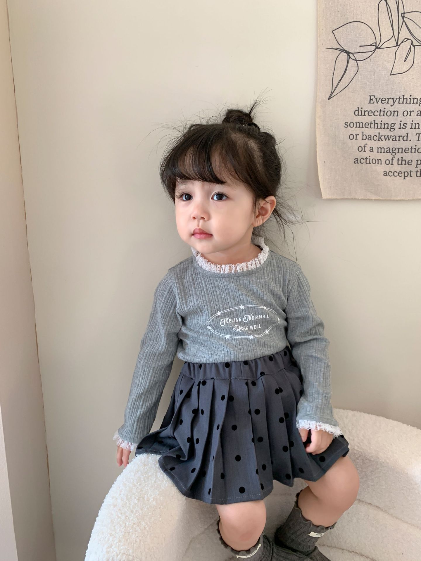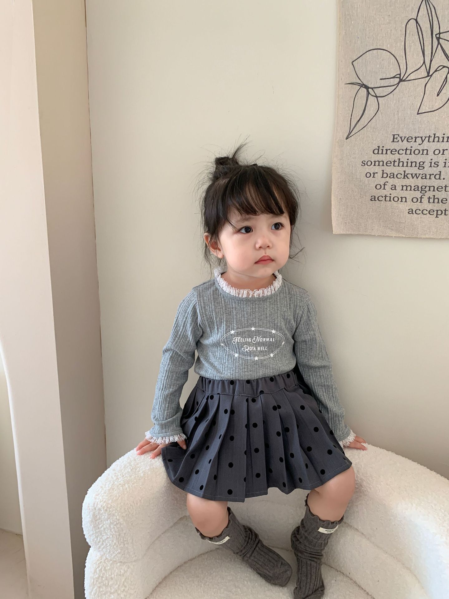 클리어런스 스타일] 사탕수수와 감자 아동복 여아 긴팔 양복 가을 아동 한국식 티셔츠 주름 치마 아기 옷스토어 가기