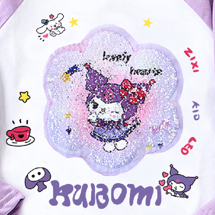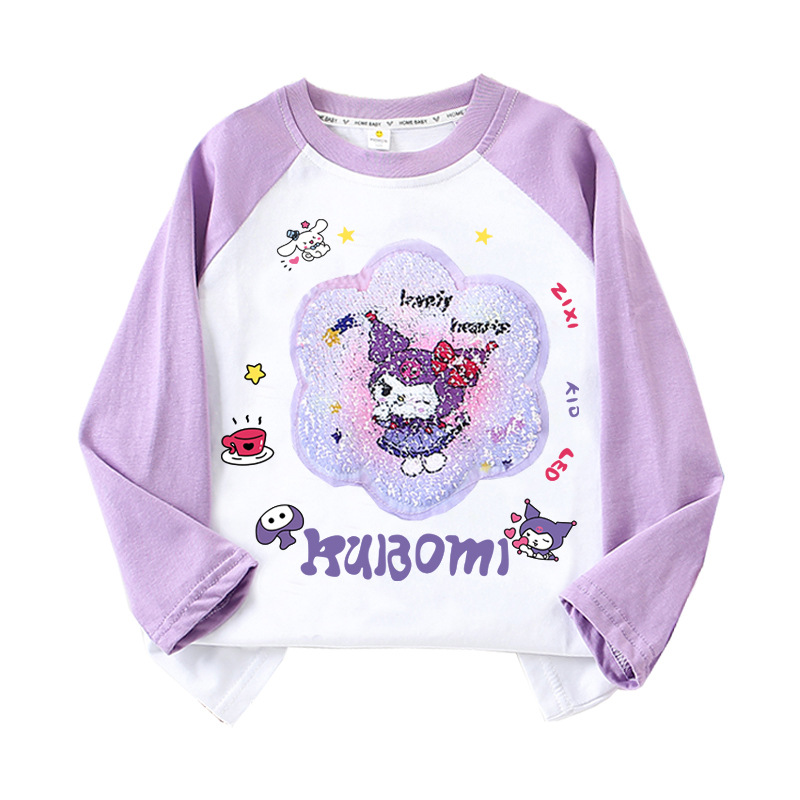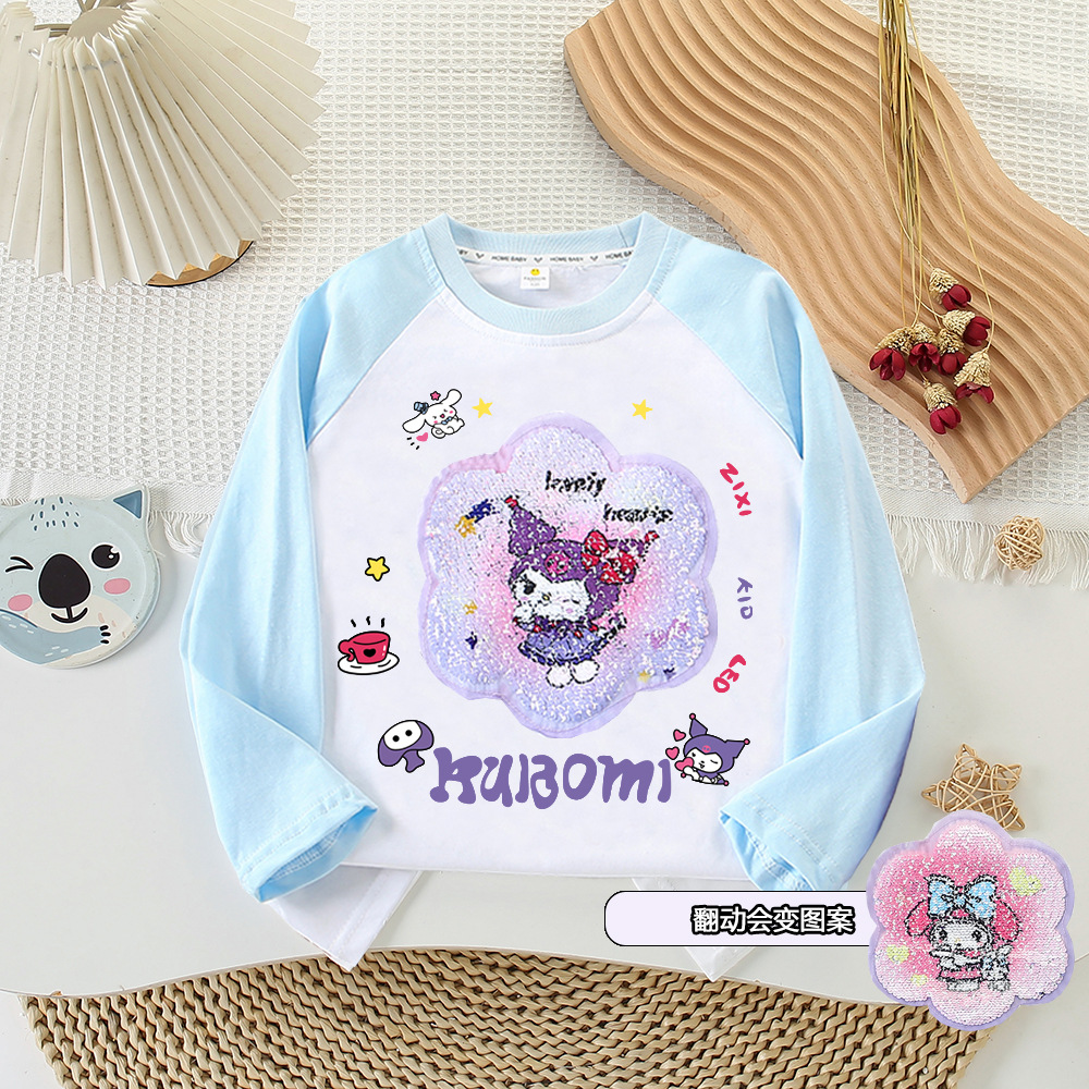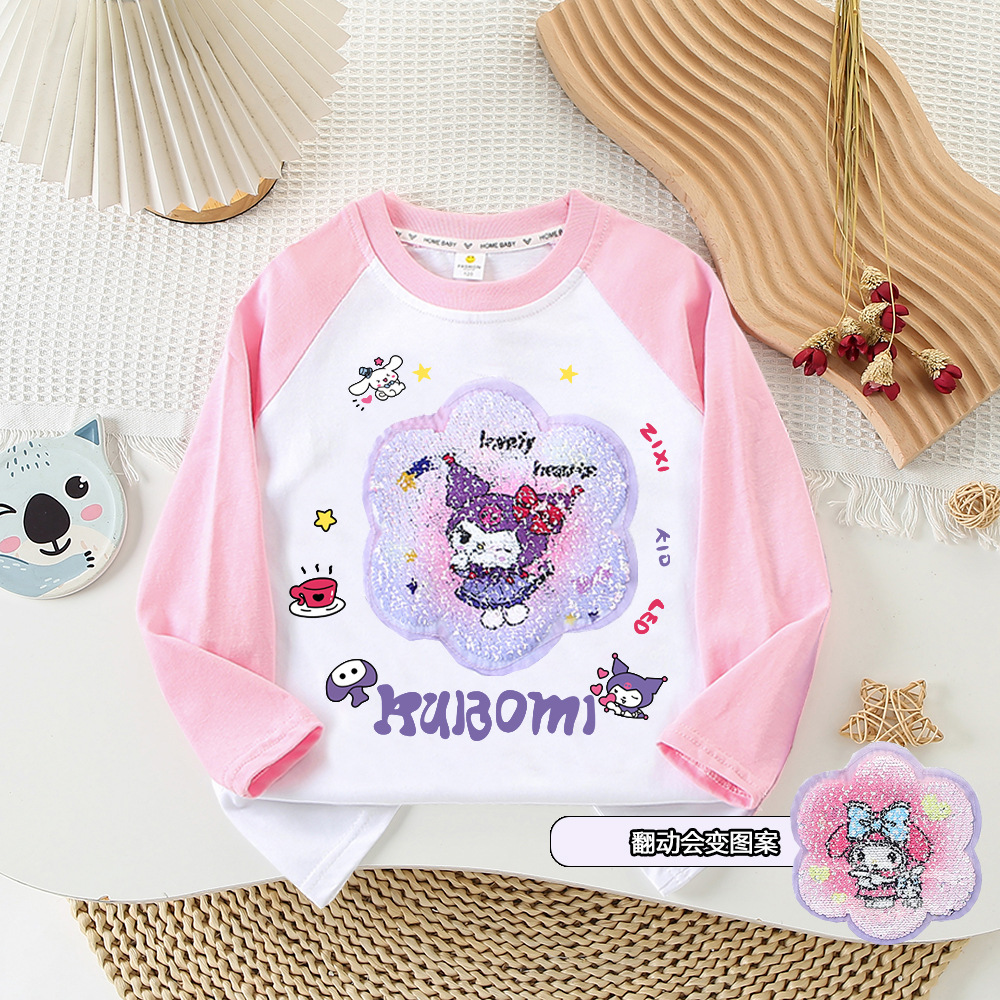 2024 소녀 만화 kulomi 스팽글 플립 컬러 긴 소매 티셔츠 봄과 가을면 바닥 셔츠 최고 조수