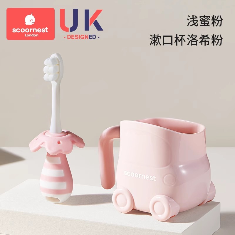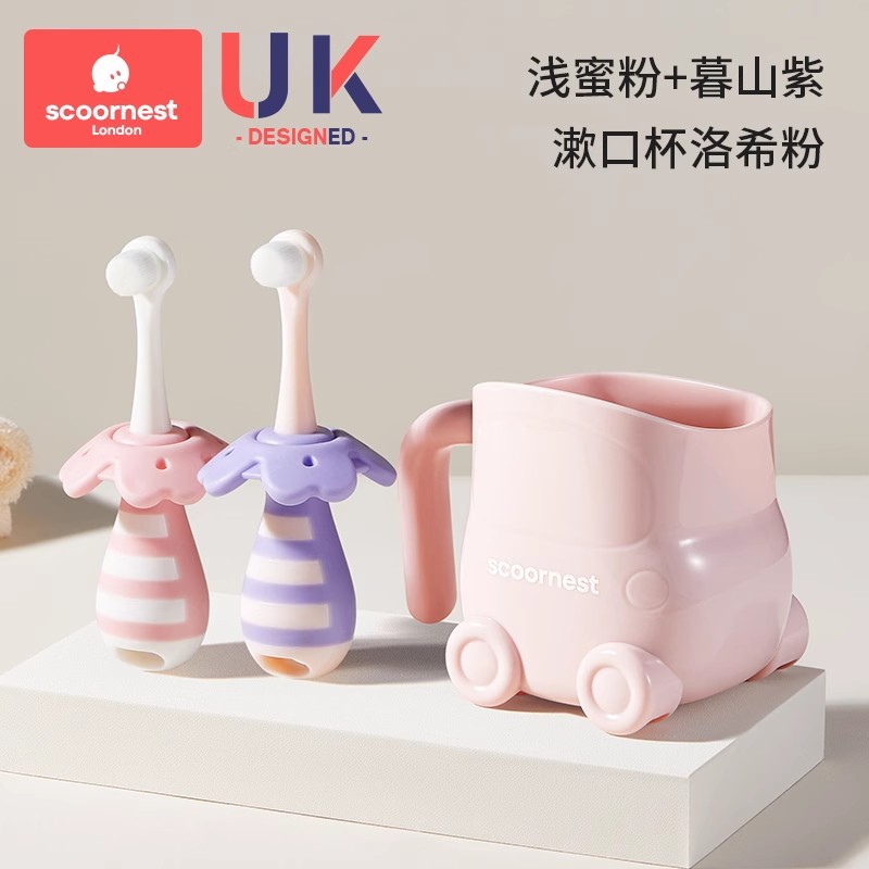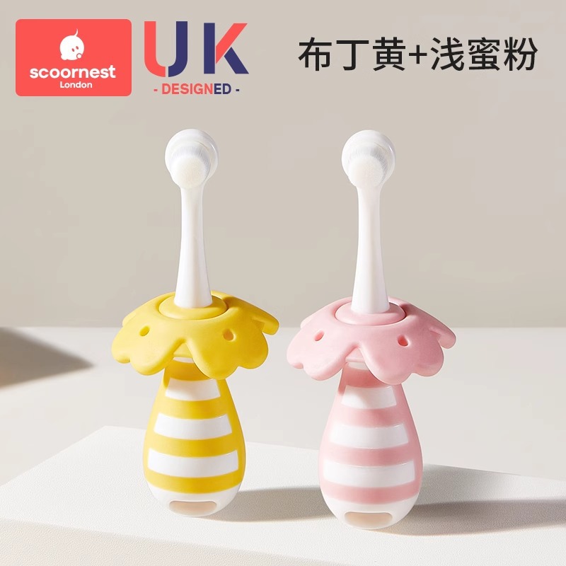 • [2개 세트 + 구강청결제 컵 할인] 푸딩 옐로우 + 라이트 파우더 + 옐로우 구강청결제 컵, 0~3세 어린이에게 적합