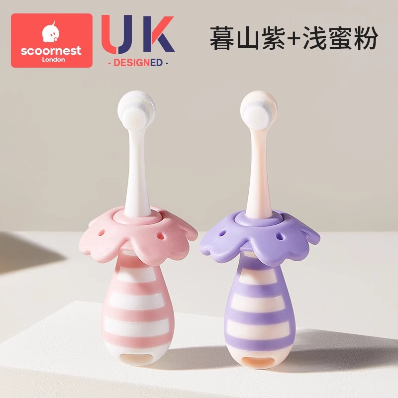 • 무샨 퍼플 + 유아용 치약 + 분말 구강 세정제 컵, 0-3세에게 적합