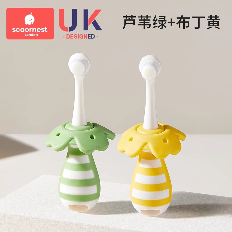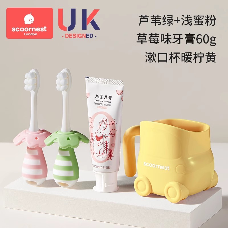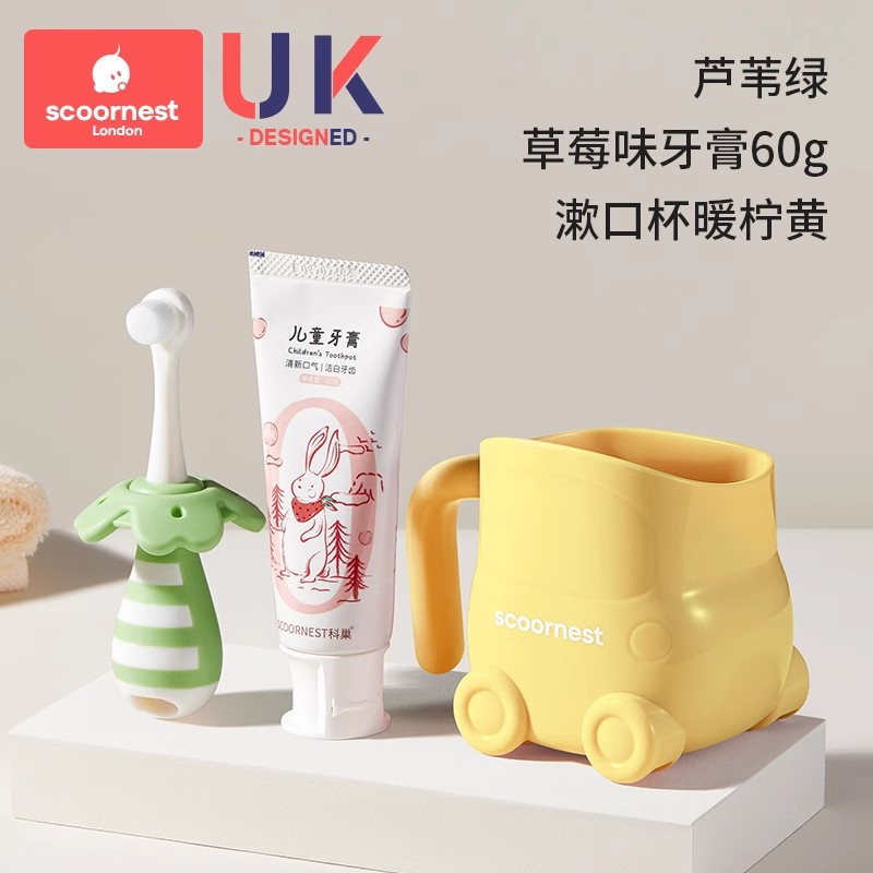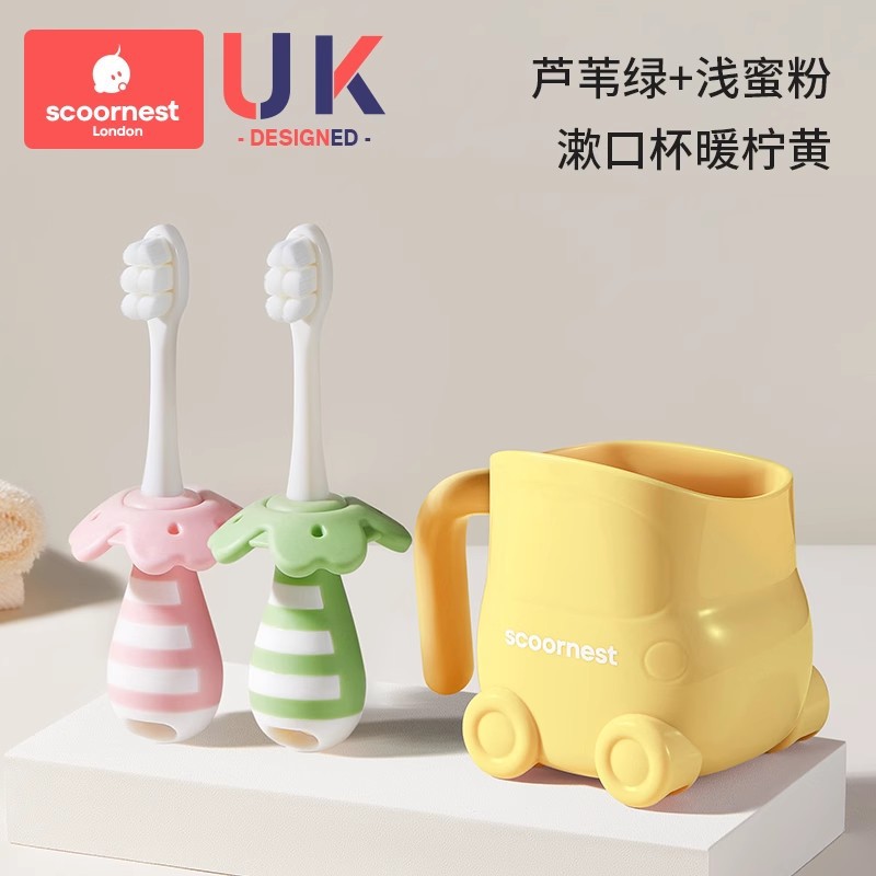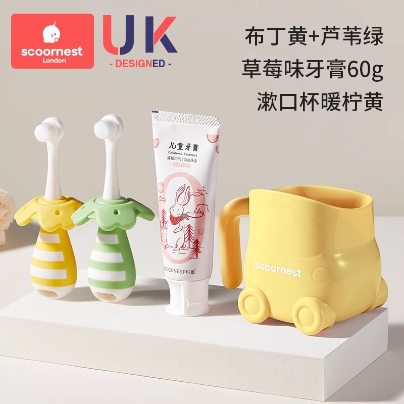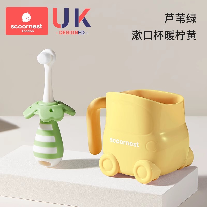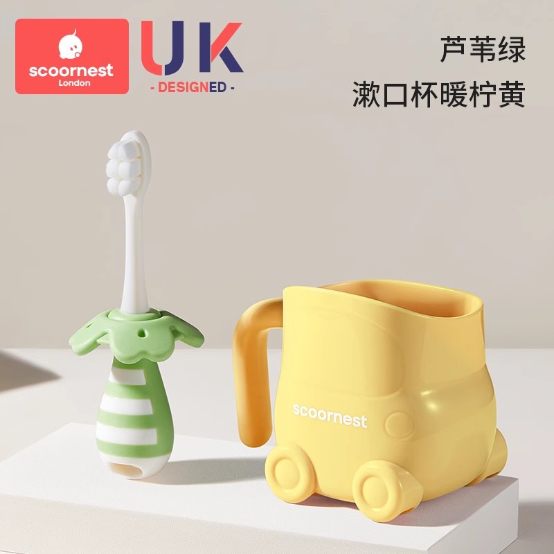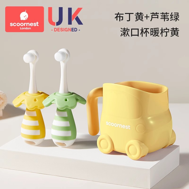• [2개 세트 + 구강청결제 컵 할인] 리드 그린 + 푸딩 옐로우 + 옐로우 구강청결제 컵, 0~3세 어린이에게 적합