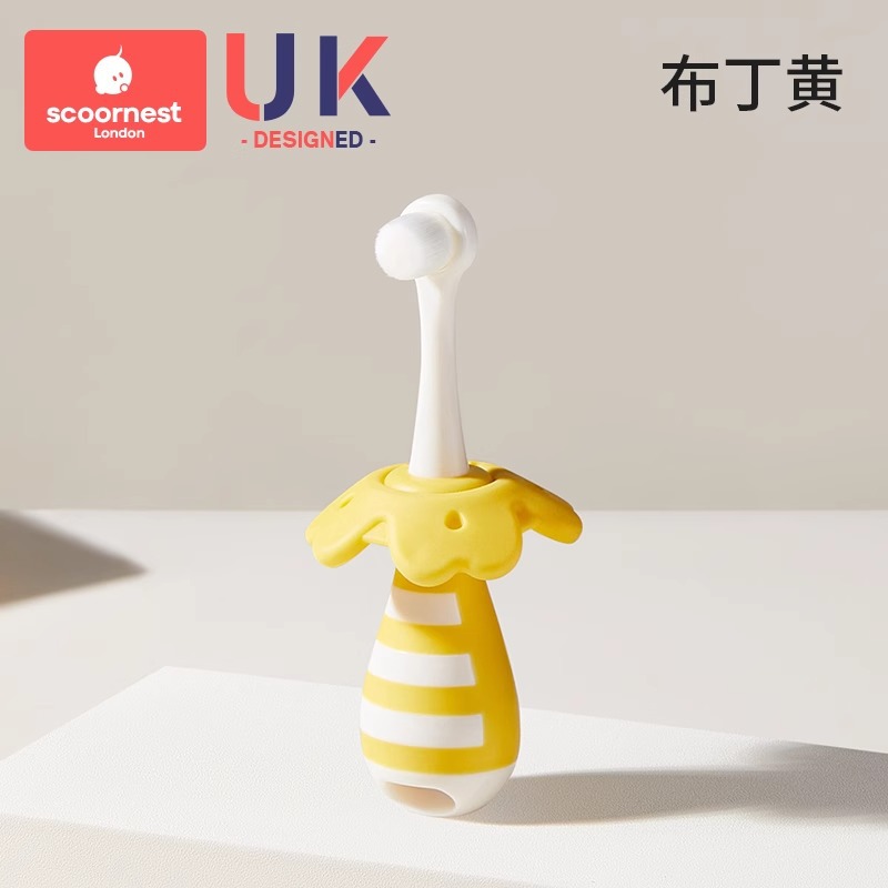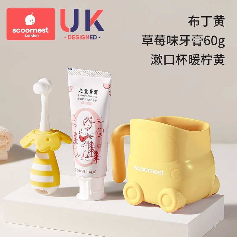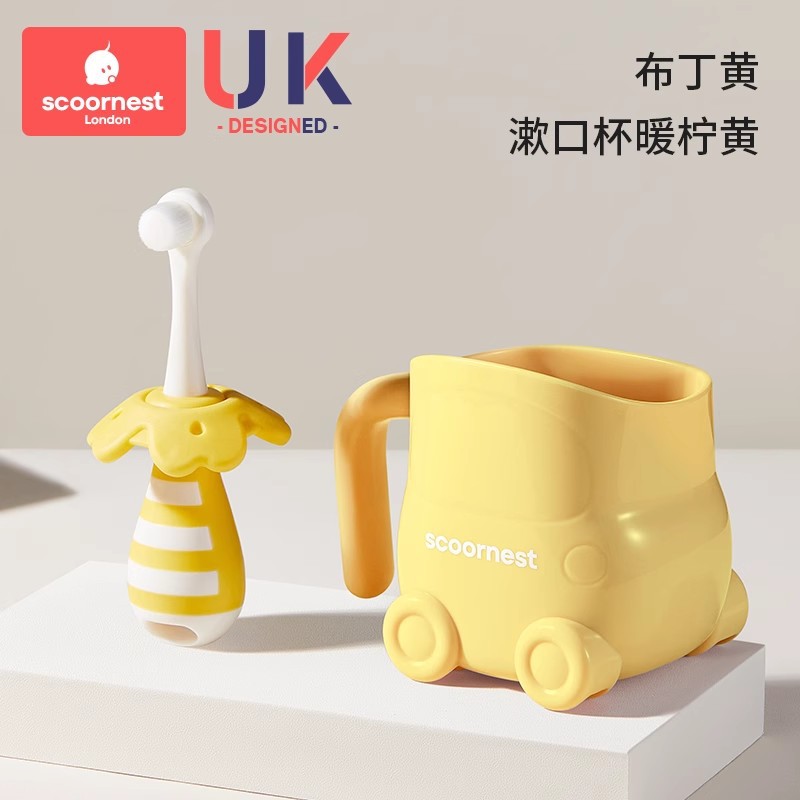 • 푸딩 옐로우 + 유아용 치약 + 노란색 구강 세정제 컵, 0-3세에게 적합