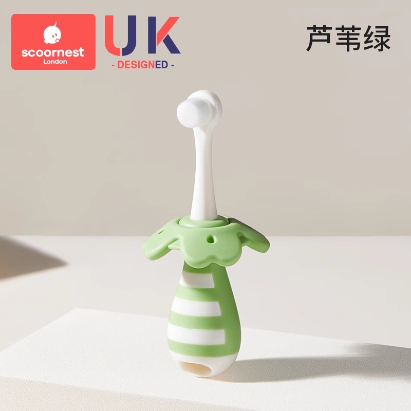 • 리드 그린 + 유아용 치약 + 노란색 구강 세정제 컵, 0-3세에게 적합